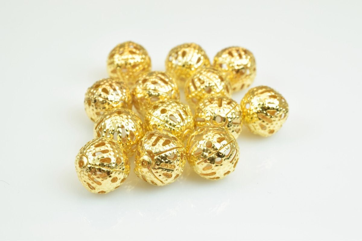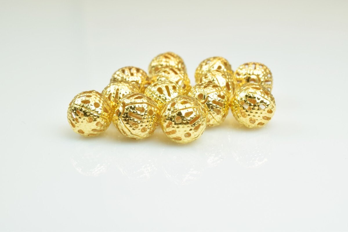100 PCs 18K Gold Plated Filigree Bead 10mm Diamond Cut For Jewelry Making