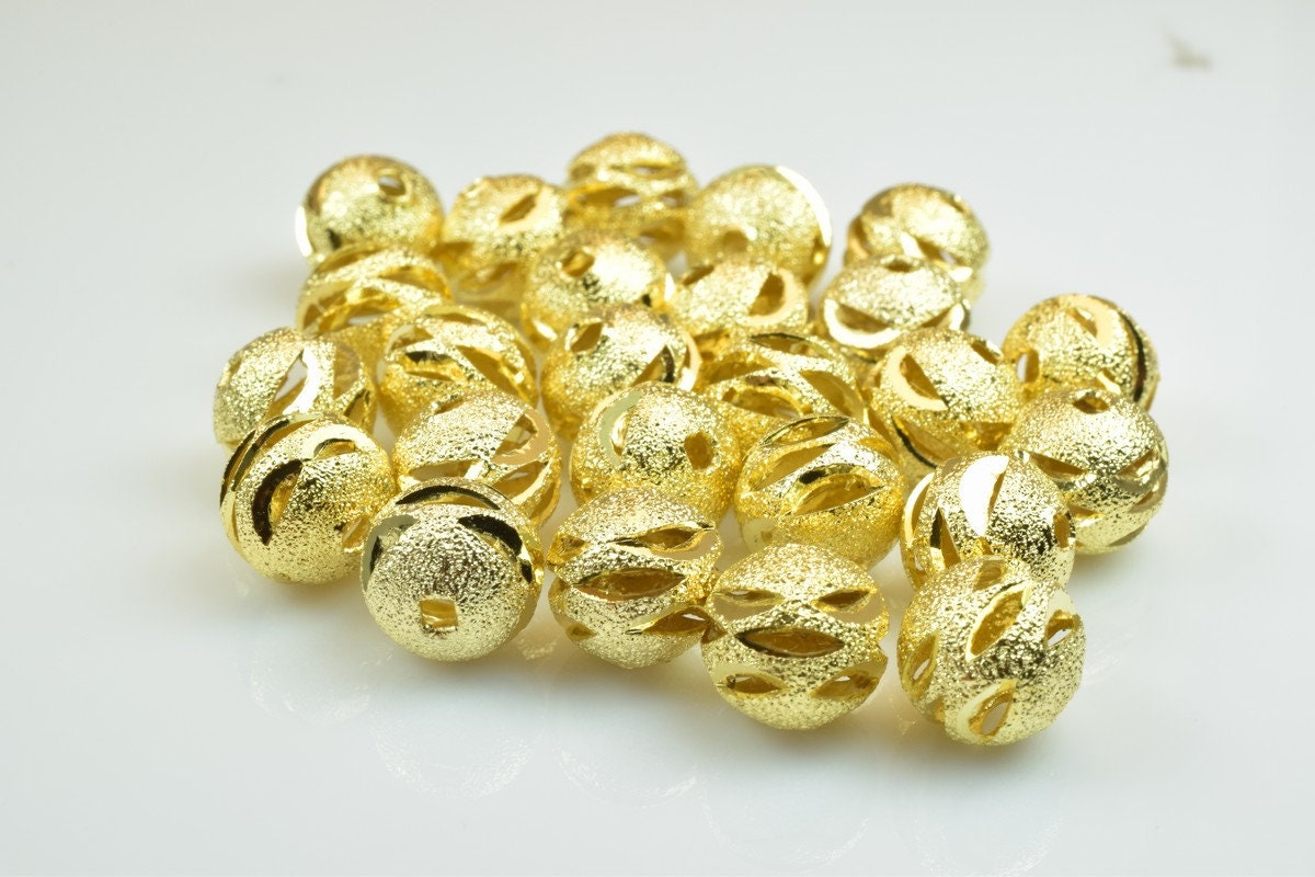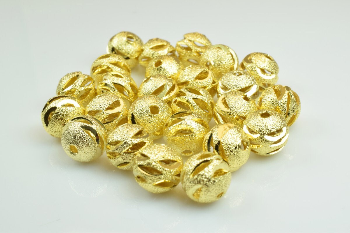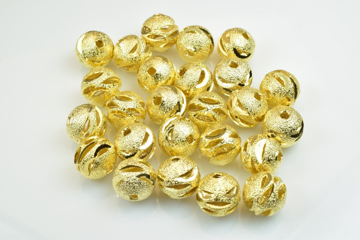 100 PCs Gold Plated Carved Round Beads 6mm/8mm/10mm Diamond Cut For Jewelry Making