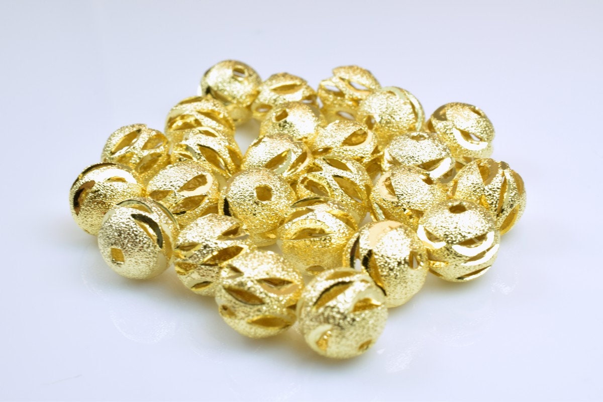 100 PCs Gold Plated Carved Round Beads 6mm/8mm/10mm Diamond Cut For Jewelry Making jewelry making supplies