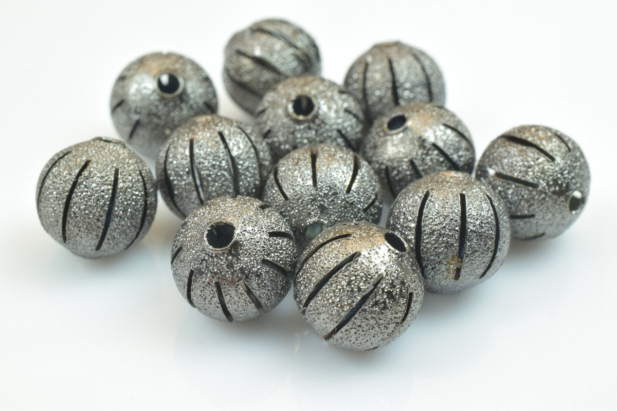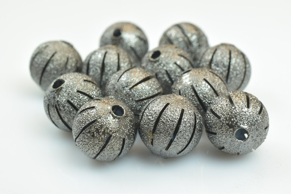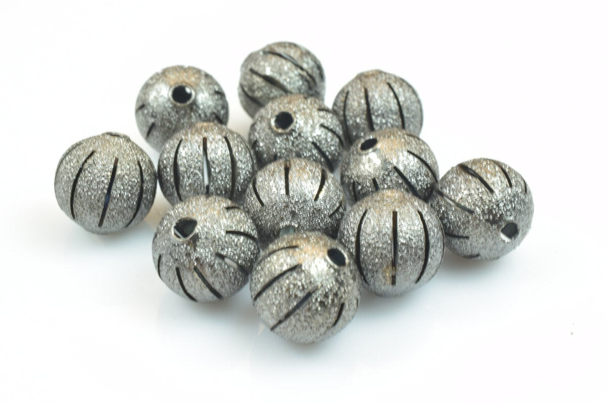 100 PCs Gun Metal Plated Black Carved Round Beads 6mm/8mm/10mm Diamond Cut For Jewelry Making