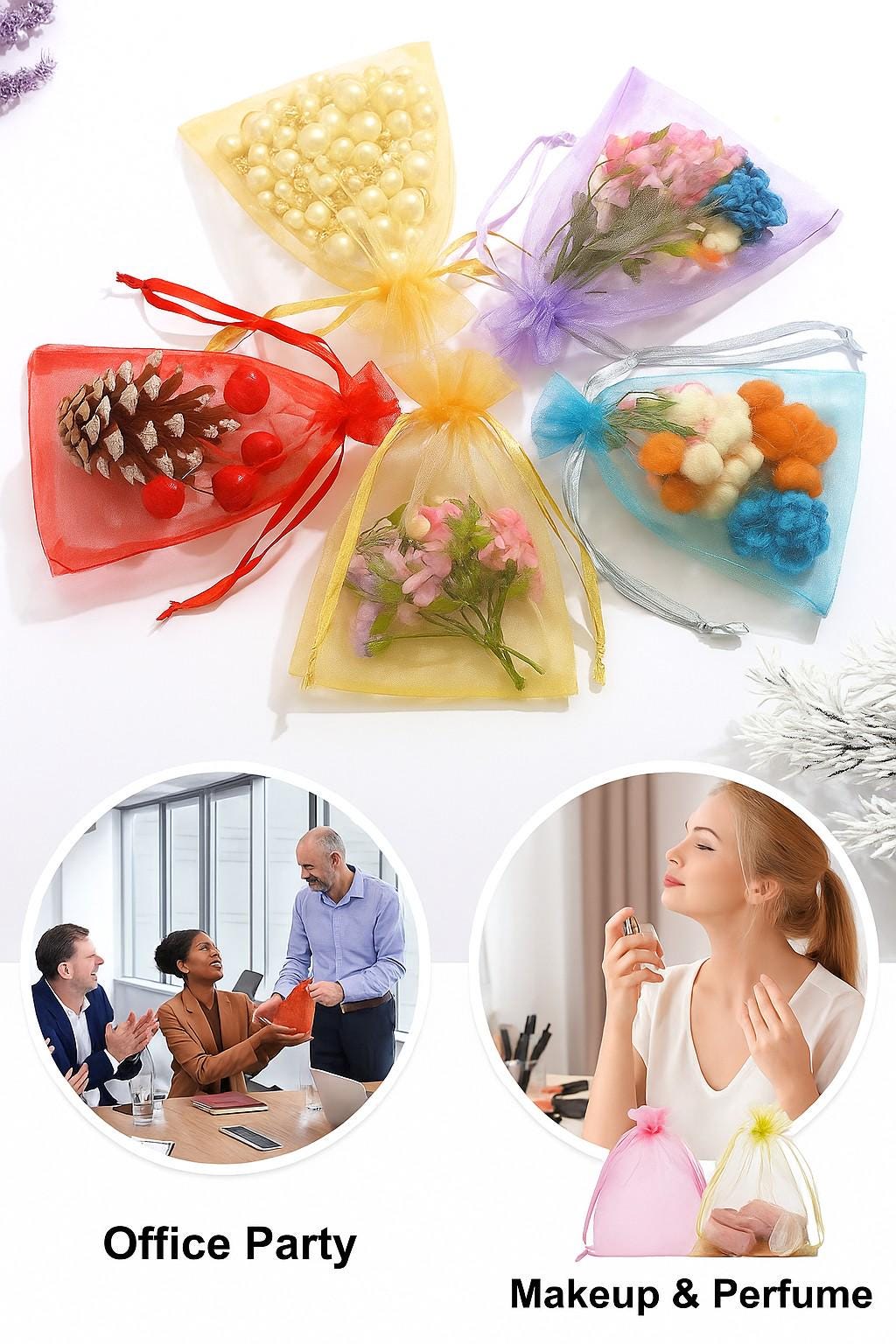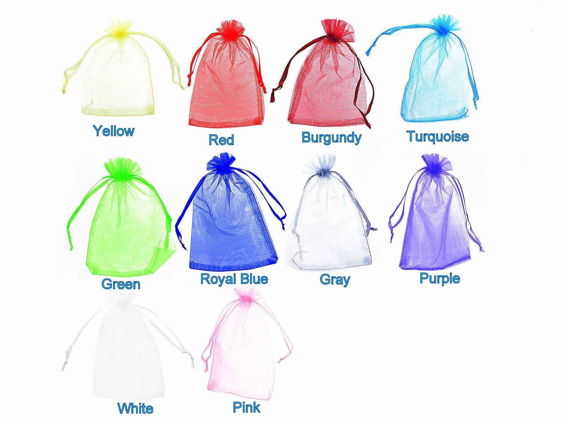 Add elegance to your gifts and events with these multi-purpose organza drawstring bags.