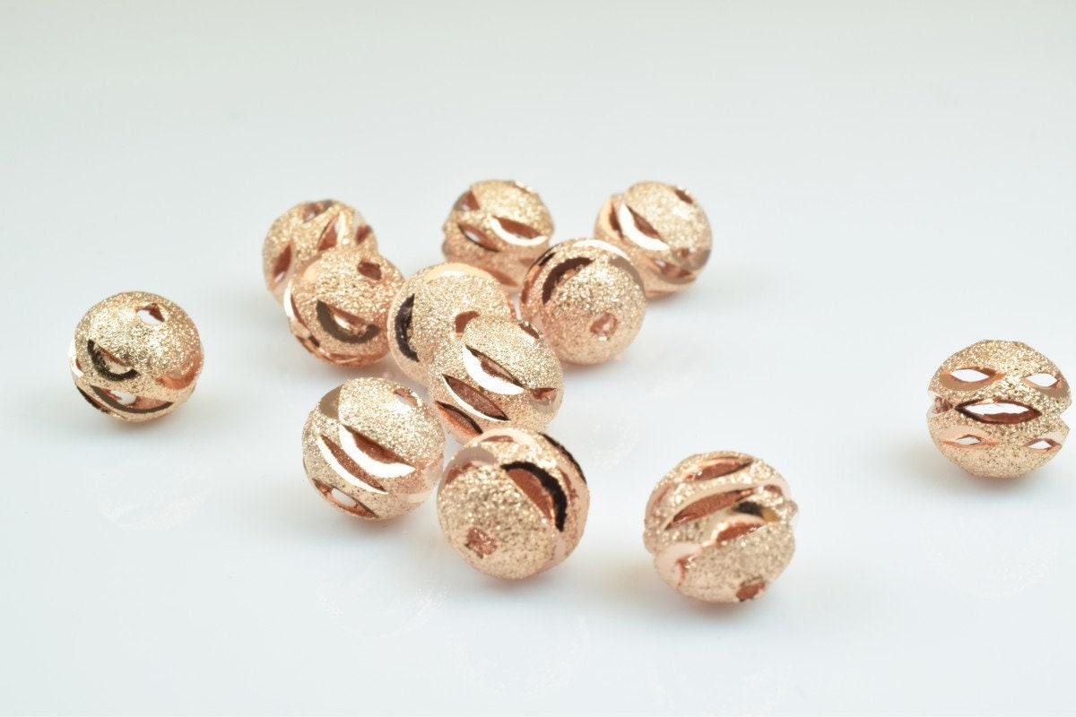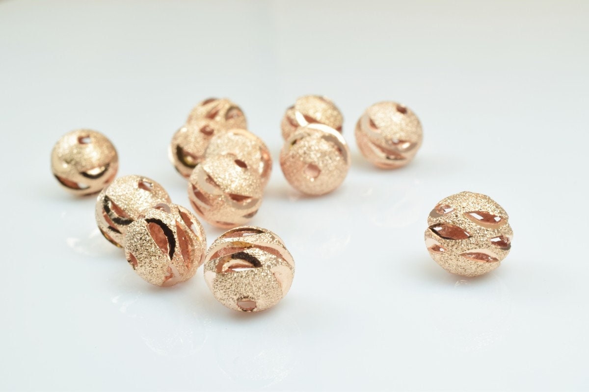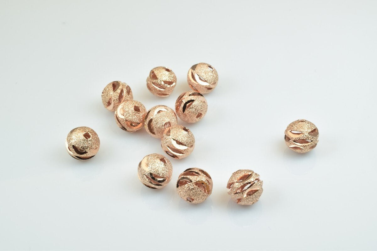 100 PCs Rose Gold Plated Carved Round Beads 6mm/8mm/10mm Diamond Cut For Jewelry Making jewelry making supplies