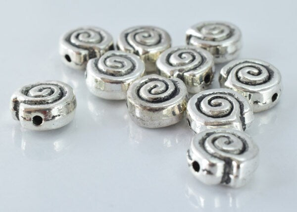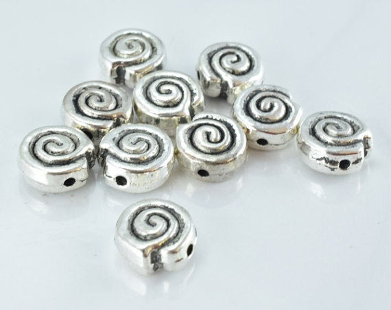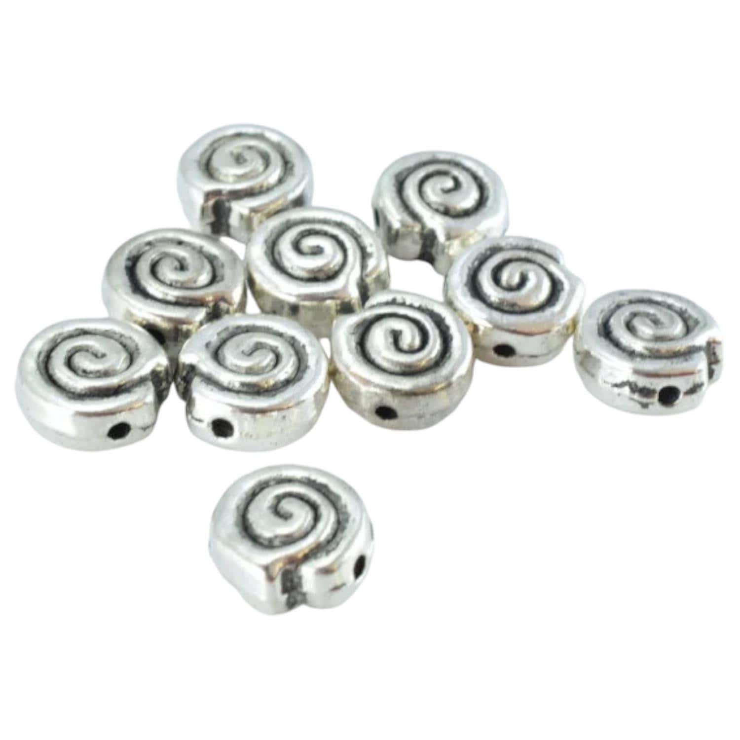 10mm Black Accent Color Swirl Antique Silver Metal Beads, Sold by 1 pack of 10pcs, 1m hole, 5m bead thickness jewelry maki...