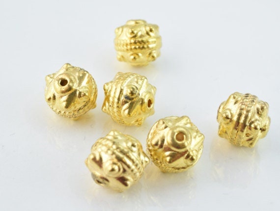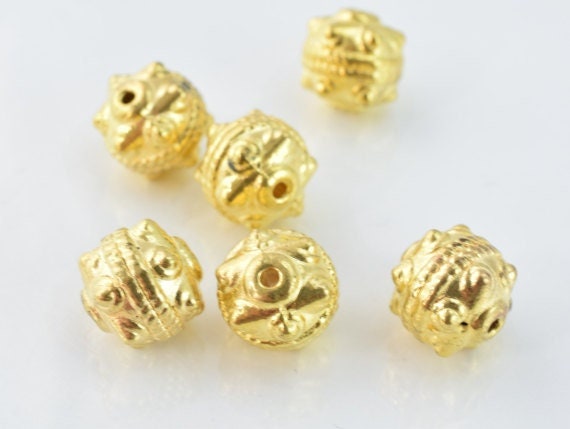 10mm Gold Plated Alloy Spiky Textured Round Beads, Sold by 1 pack of 6pcs, 1mm hole double opening jewelry making supplies...