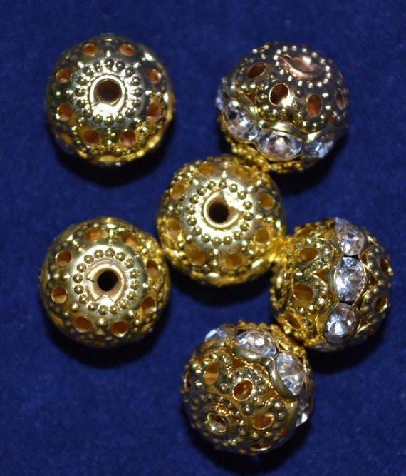 Gold Plated Round Rhinestone Clear Beads, Sold by 1pack of 6pcs 10mm, 1.5mm, 4.1 grams/pk***************************************