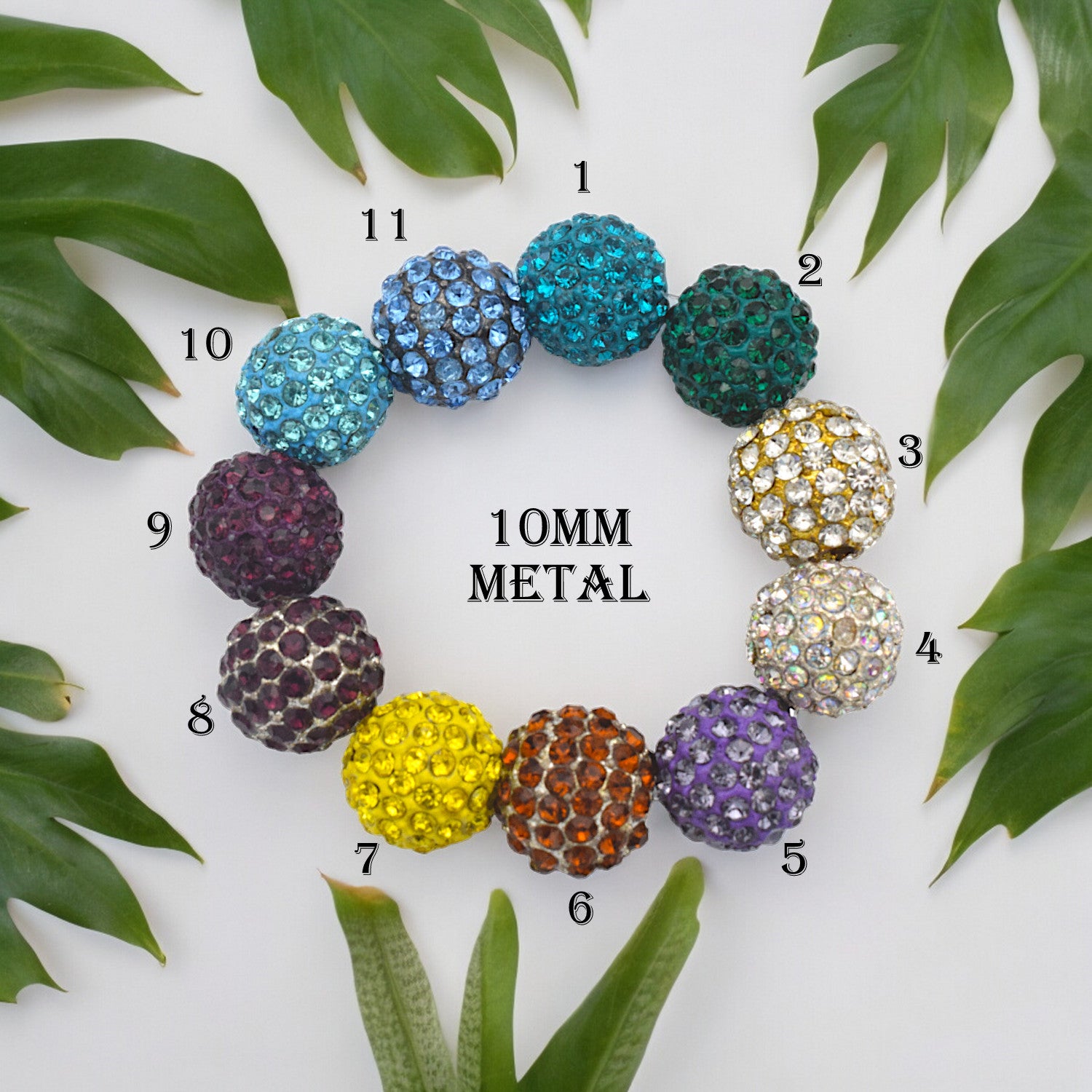 Add a touch of sparkle to your jewelry designs with our stunning collection of 10mm micro pave beads. Each bead is meticulously encrusted with shimmering rhinestones, creating a dazzling effect that catches the light from every angle. Perfect for bracelets, necklaces, and other accessories, these beads come in a variety of vibrant colors to suit any project.