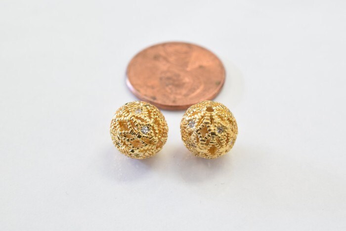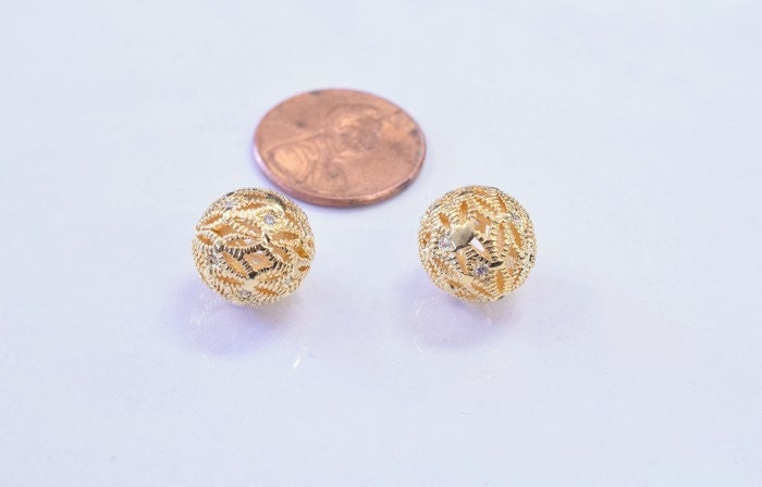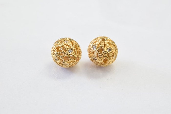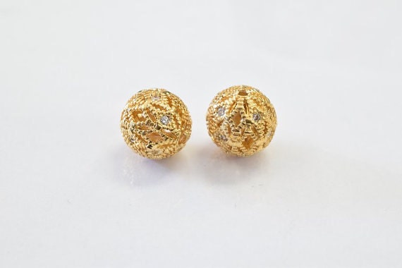 10mm Round Ball 18k Gold Filled Micro Pave Beads with Clear CZ Cubic Zirconia, 18K Gold Filled Findings For Jewelry Making...