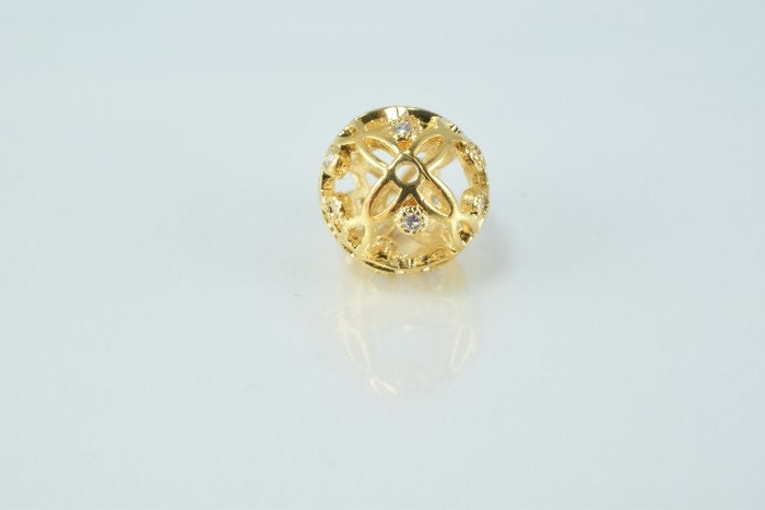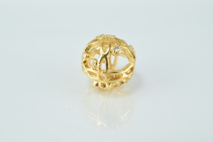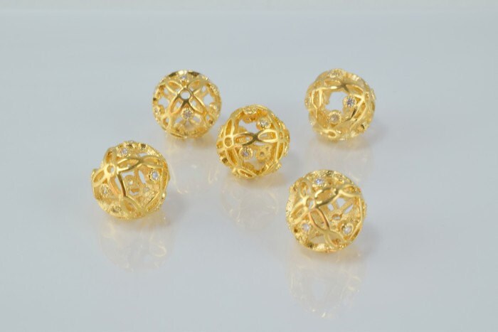 10mm Round Ball 18k Gold Filled Micro Pave Beads with Clear CZ Cubic Zirconia, 18K Gold Filled Findings For Jewelry Making...