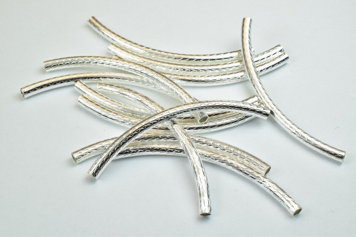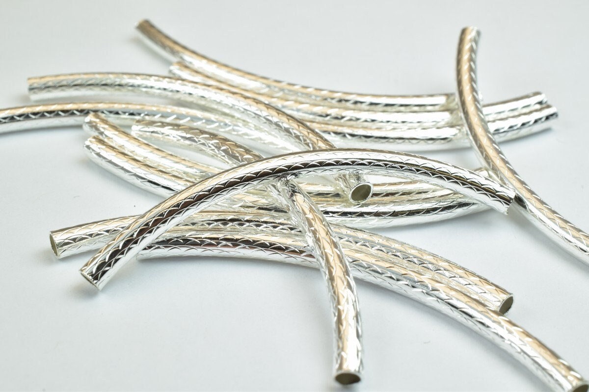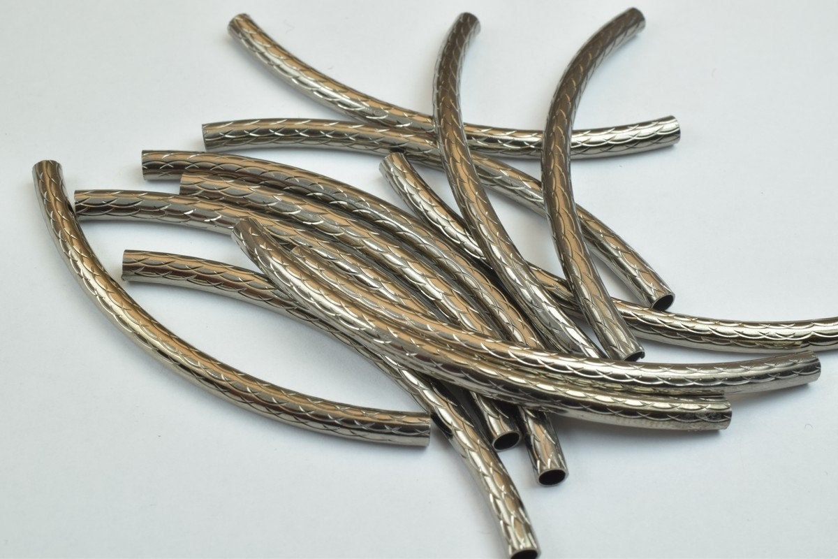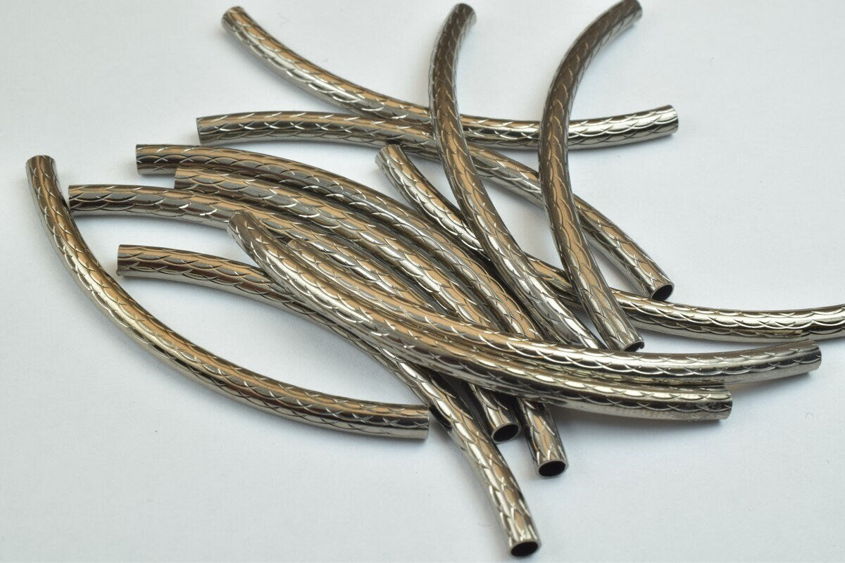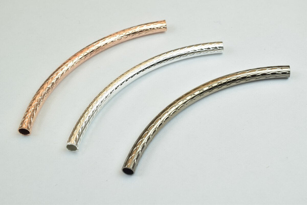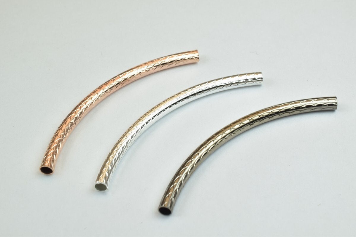 12 PCs Curve Tube Jewelry Finding Beads 3x40mm/3x45mm/3x50mm Diamond Cut Gold/Silver/ Rose Gold/Gun Metal For Jewelry Making
