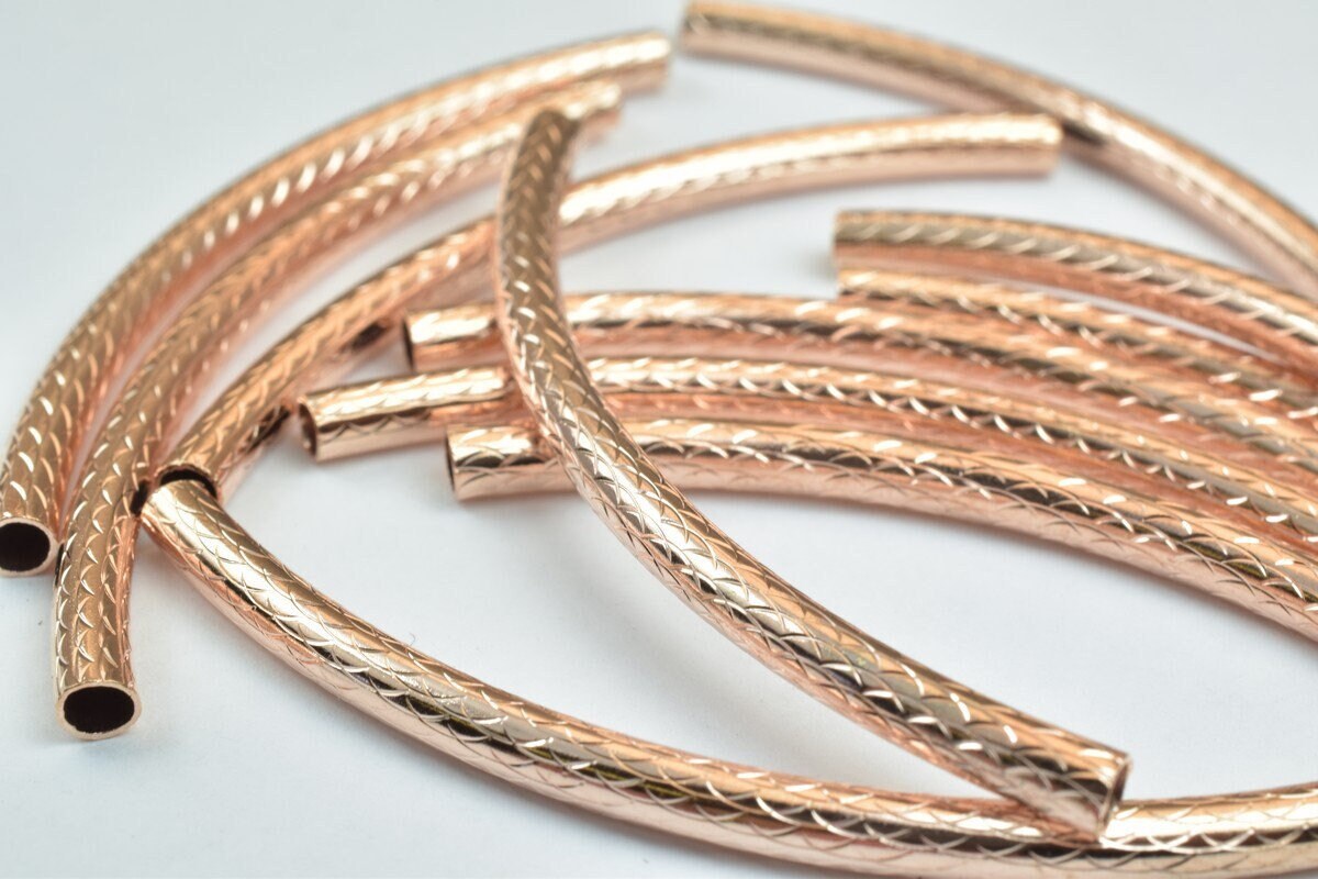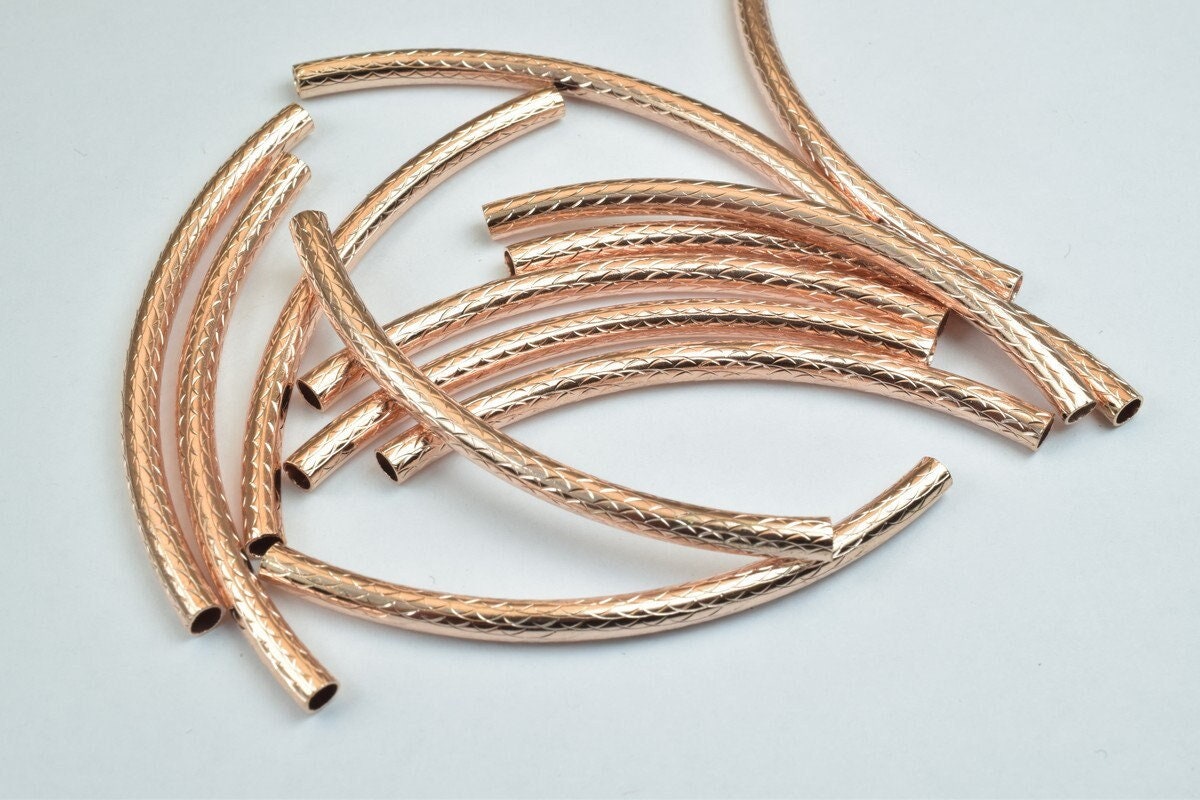 12 PCs Curve Tube Jewelry Finding Beads  3x40mm/3x45mm/3x50mm Diamond Cut Gold/Silver/ RoseGold For Jewelry Making jewelry...