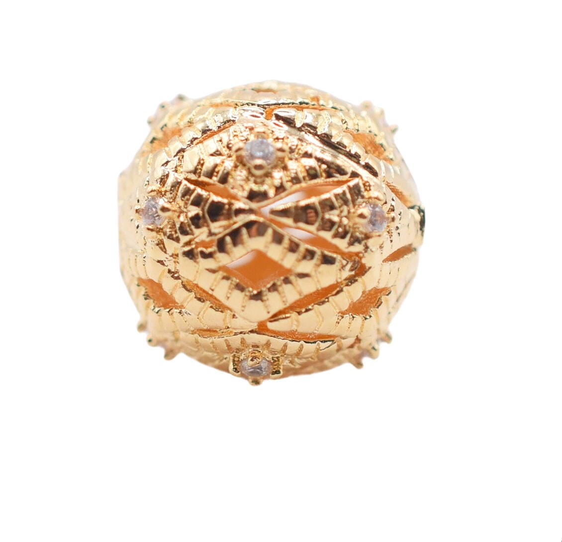 12mm 18k Gold Filled Look, Micro Pave Beads with Clear CZ Cubic Zirconia- GFM06G