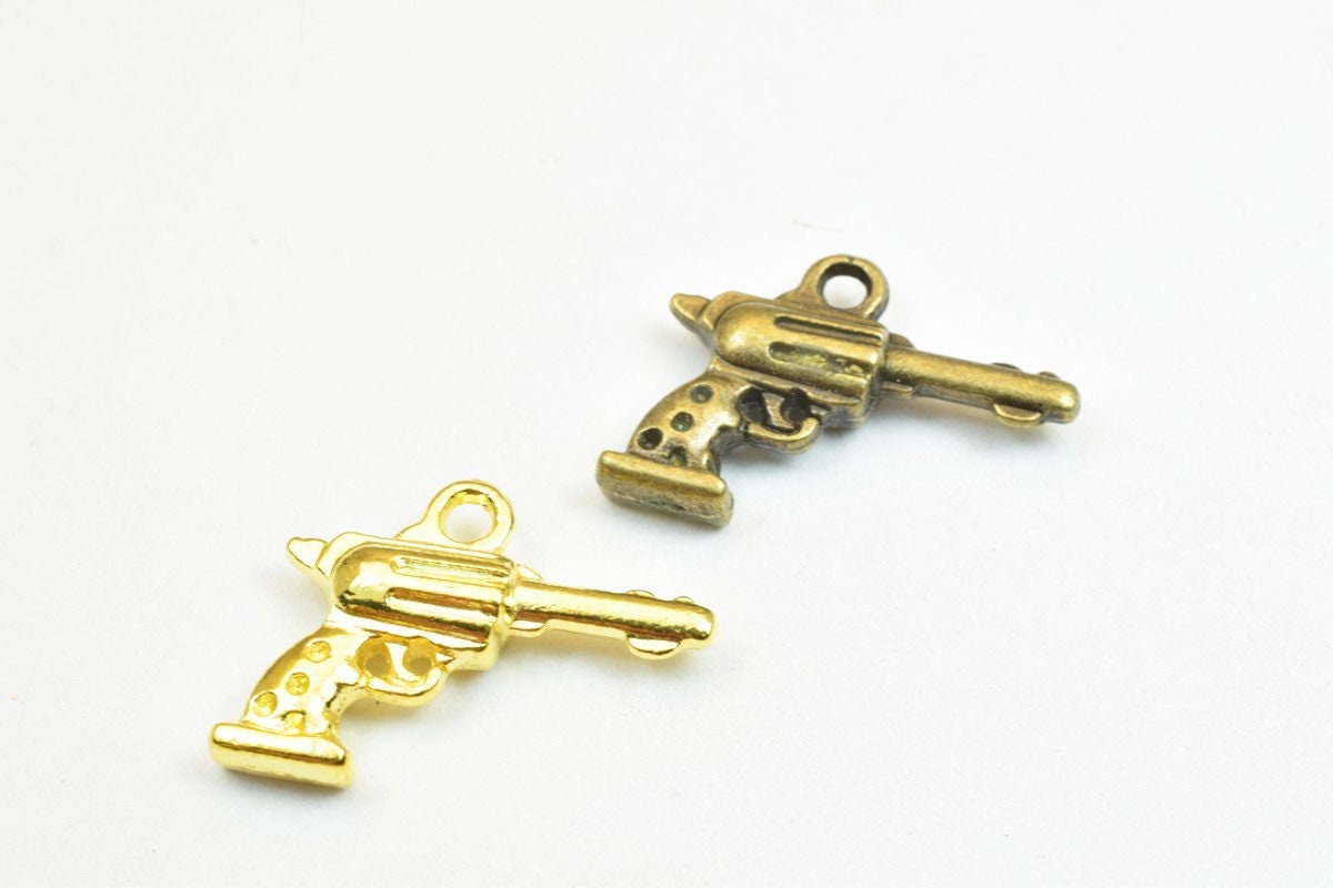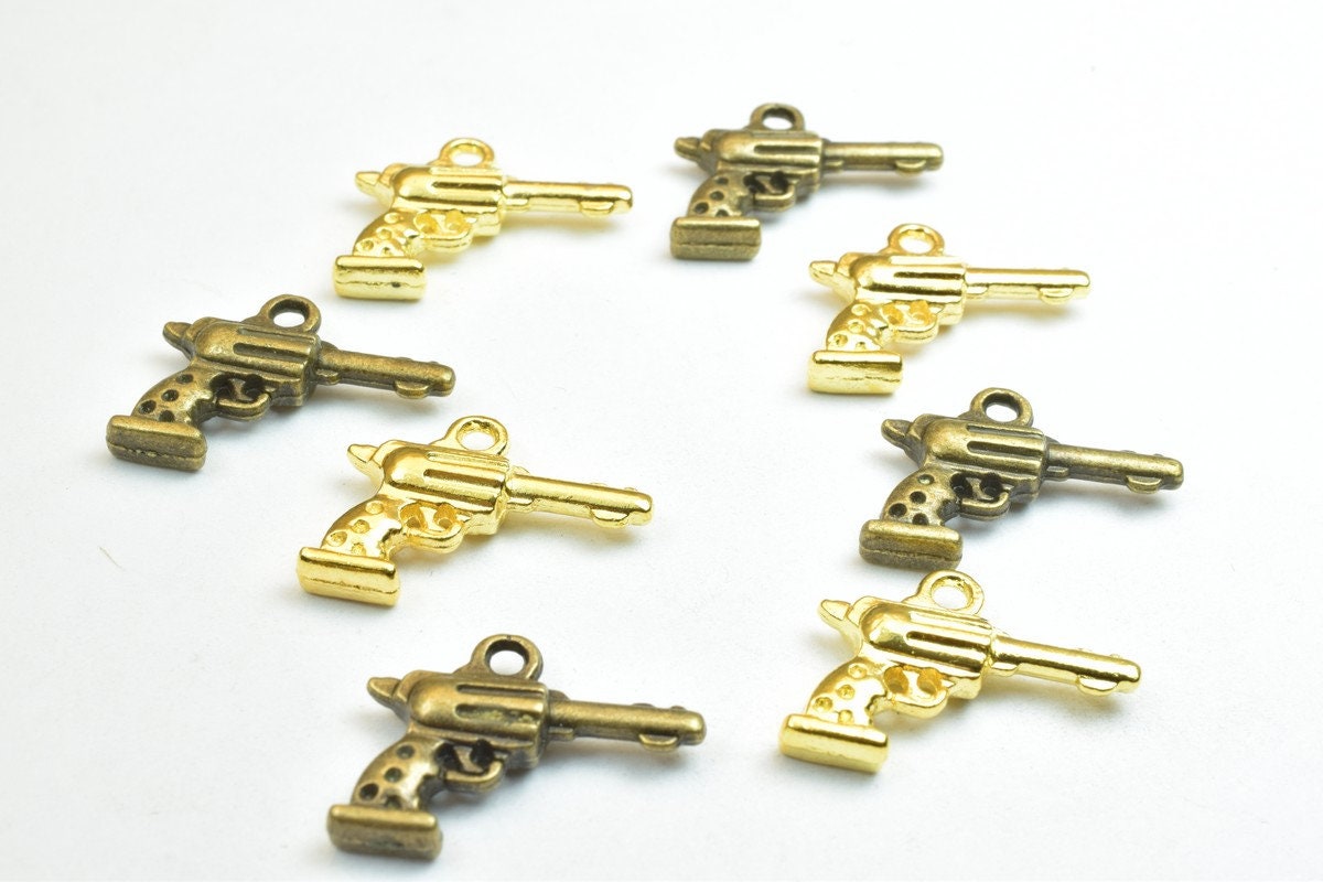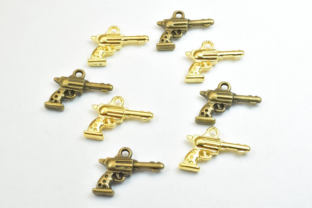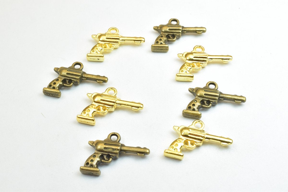 8 PCs Hand Gun Charm Pendants Antique Green/Gold Beads Base Metal Alloy Pendant Size 20x15mm Jump Ring Size 1.5mm Weapons charm For Jewelry Making