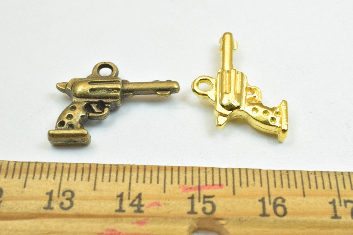 14 PCs Hand Gun Weapons Charm Pendant Antique Green/Gold Beads Base Metal Alloy Pendant Size 20x15mm Jump Ring Size 1.5mm For Jewelry Making