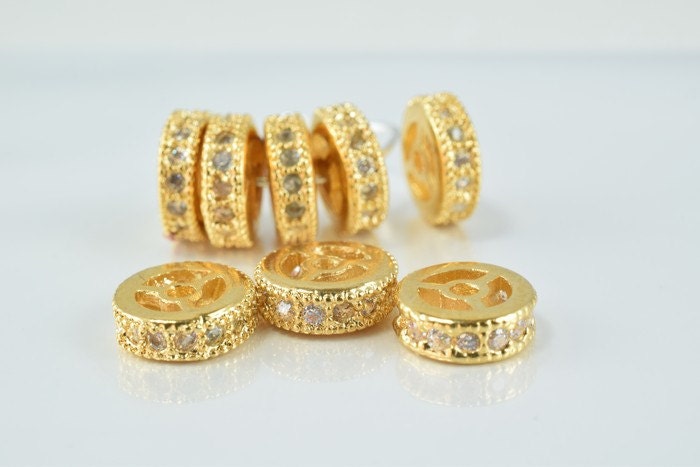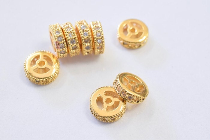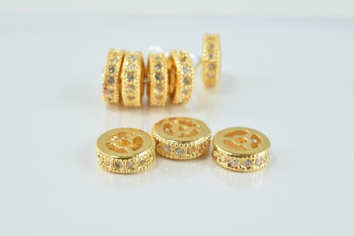 14k 9mm Roundel Gold Filled Look, EP Micro Pave Beads Clear CZ Cubic Zirconia jewelry making supplies