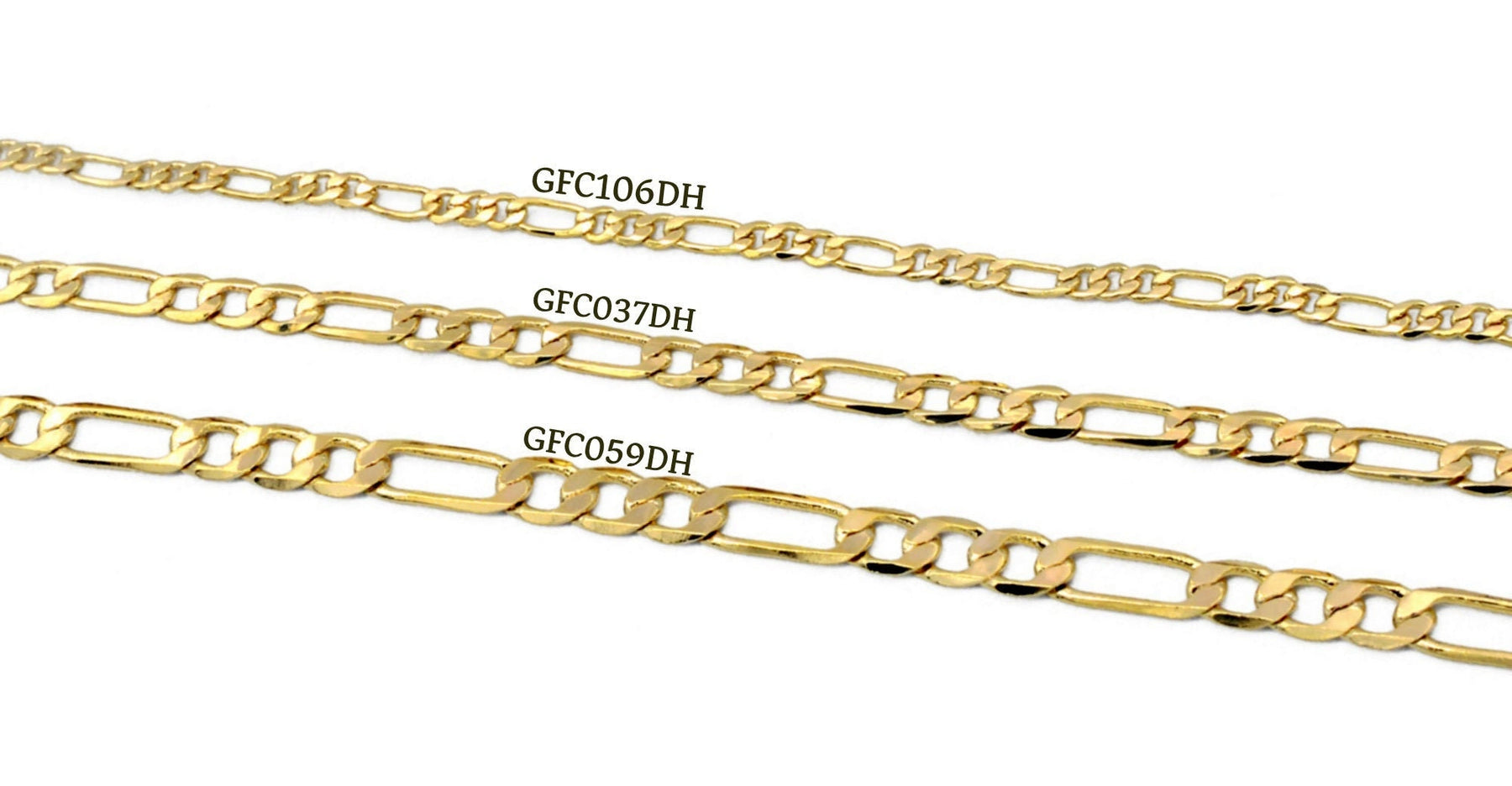 14K Gold Filled Look, EP Figaro Curb Necklace 2mm/3mm/3.8mm jewelry making supplies