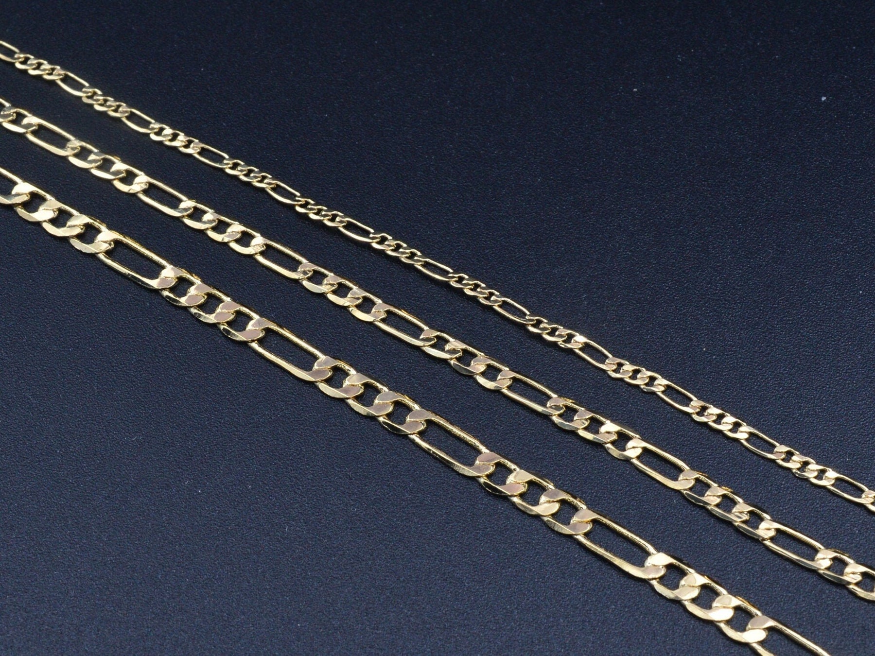 14K Gold Filled Look, EP Figaro Curb Necklace 2mm/3mm/3.8mm jewelry making supplies - detail image 2
