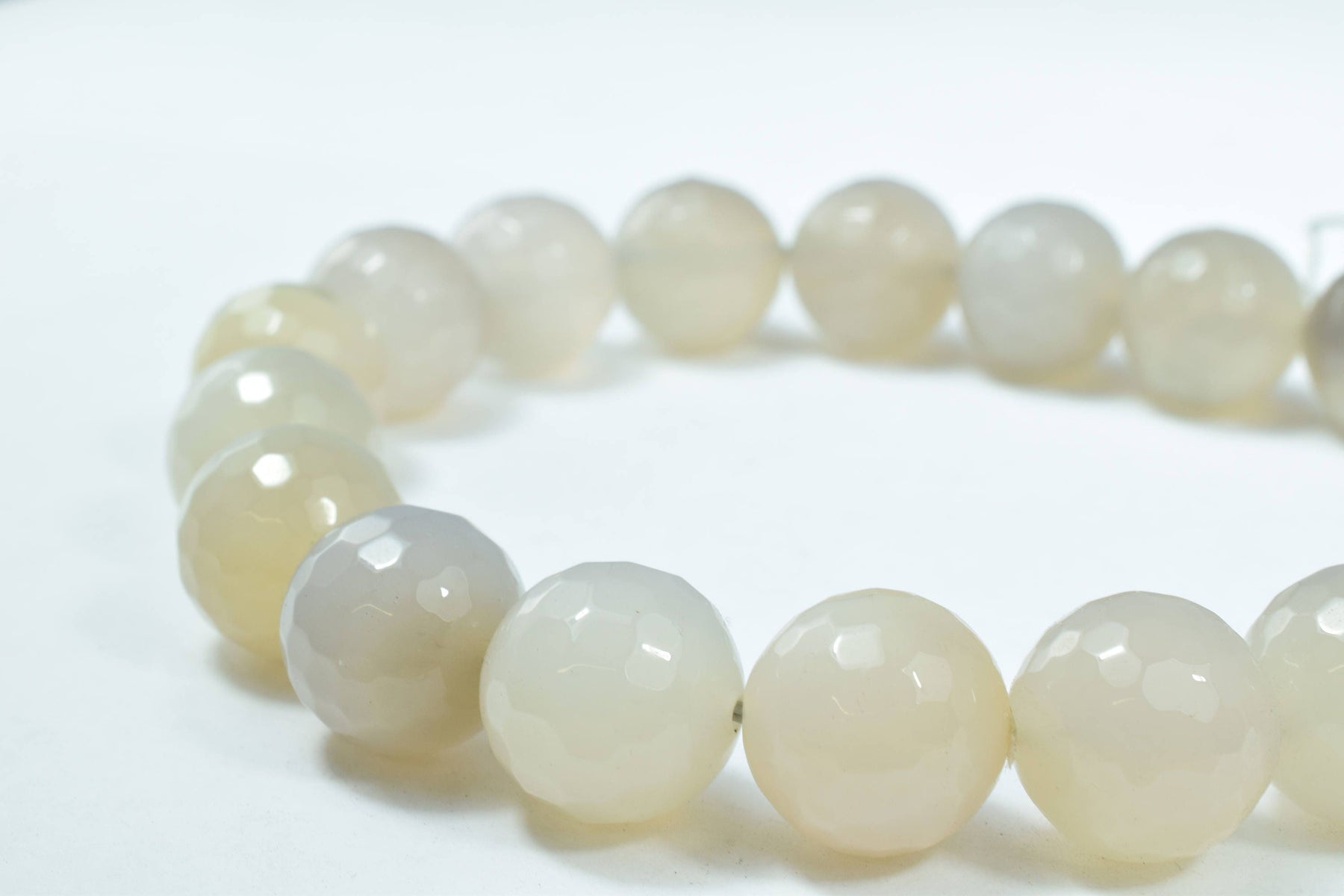 14mm Light Grey Round Faceted Gemstone Agate Beads, Grey agate, Agate Beads,Natural Agate,Grey,Birthstone,Gemstone Jewelry...