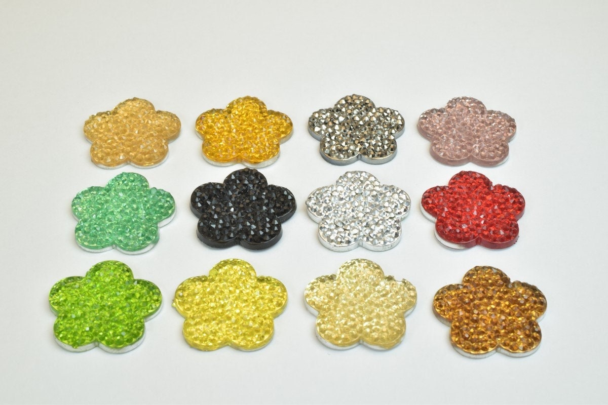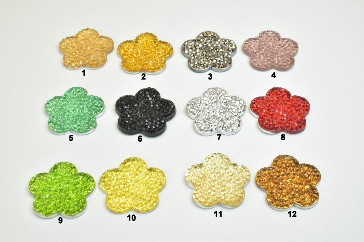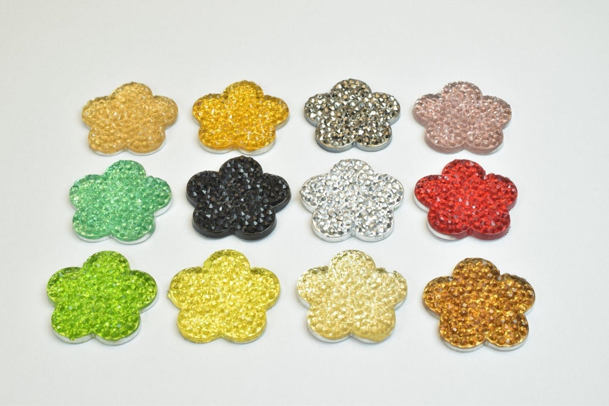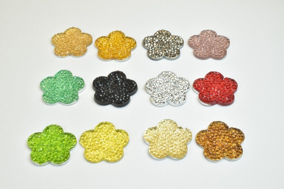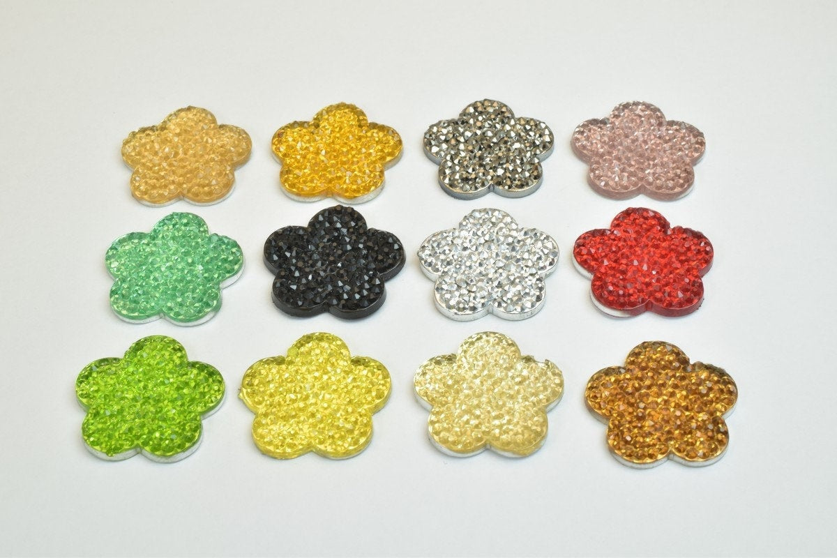 15 PCs Sparkly Acrylic Rhinestone Flower 21mm Resin Flatback Decoden Beads Kawaii Cabochons Phone Case Embellishments Bling Invitation