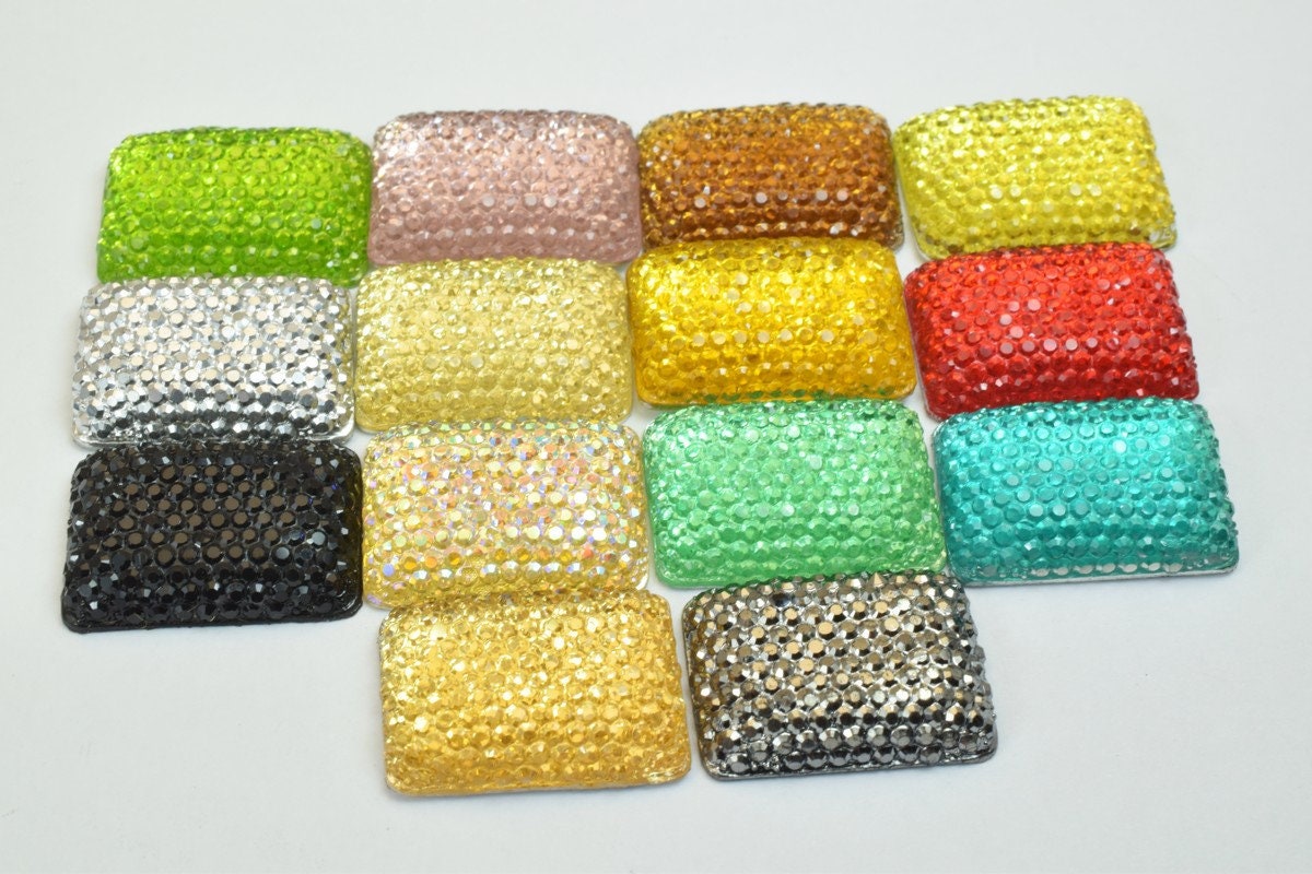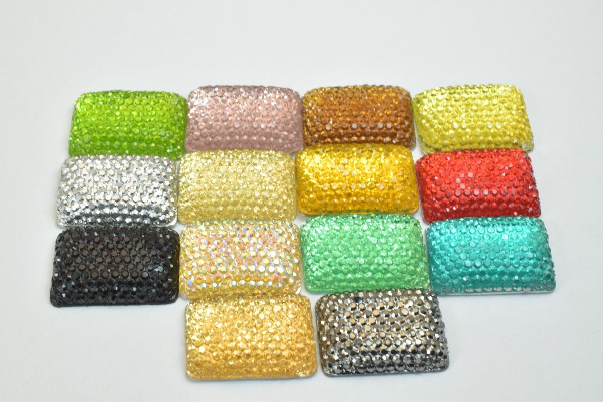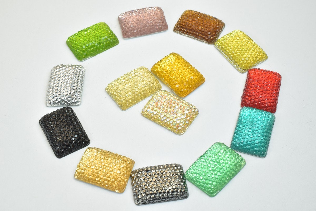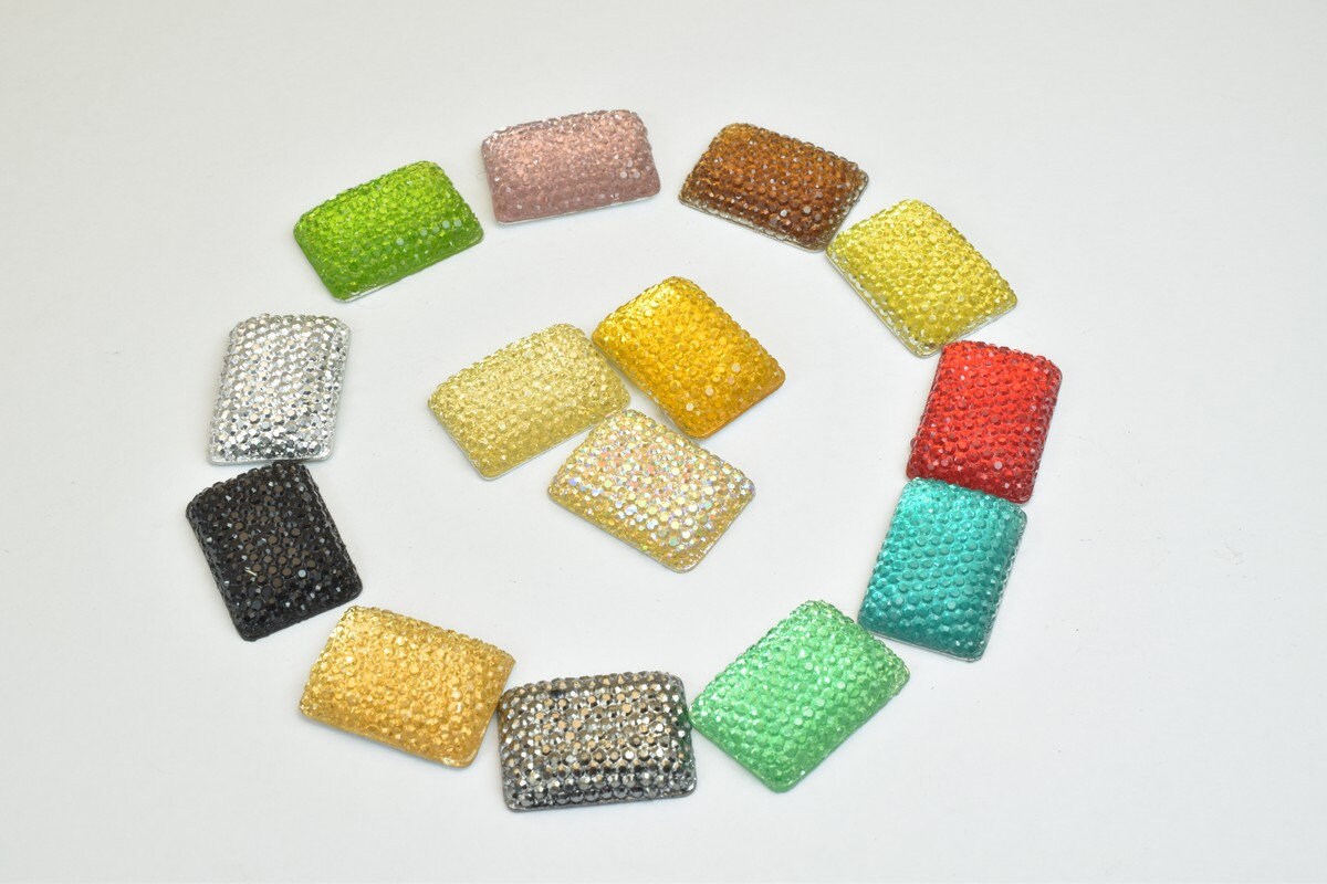 15 PCs Sparkly Acrylic Rhinestone Rectangle 20x15mm Resin Flatback Decoden Beads Kawaii Cabochons Phone Case Embellishments Bling Invitation