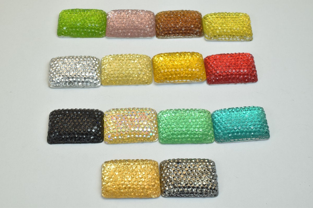 15 PCs Sparkly Acrylic Rhinestone Rectangle 20x15mm Resin Flatback Decoden Beads Kawaii Cabochons Phone Case Embellishment...