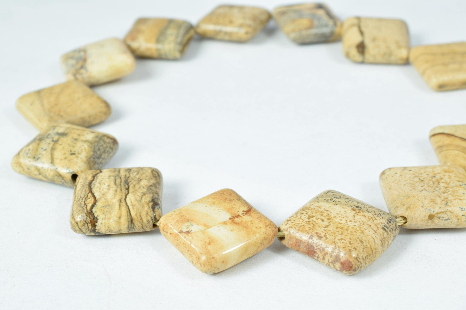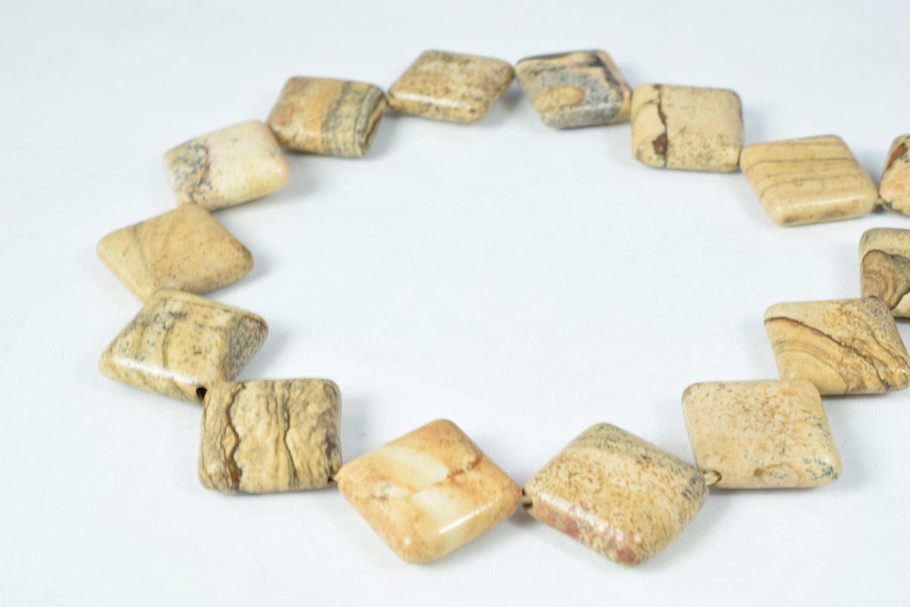 15mm Jasper Square Stone Beads, Sold by 1 strand of 19pcs,1.5mm hole opening,Jasper Square Stone Beads, Sold by 1 strand of 19pcs