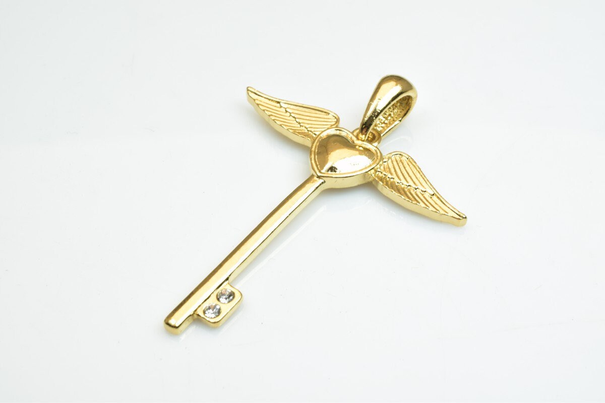 41mm 18KGF Gold Filled Angel Wing Heart Cross Key Pendant - Religious Jewelry Alternative