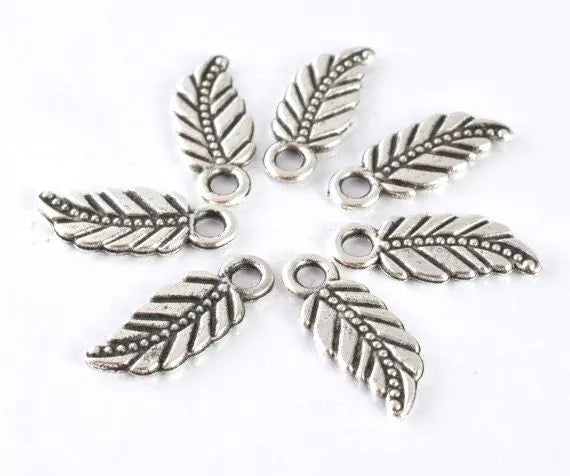 18x7mm Antique Silver Tribal Leaf Charm Pendant with black accent design detail, Sold by 1 pack of 20pcs, 2mm hole opening, 2mm thickness of pendant, 12grams/pk, Item# 110321***************************************