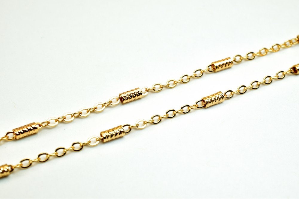 18K Pinky Gold Filled EP Flat Link Cable Chain/Bar Chain Width 2mm Thickness 0.25mm Finding for Jewelry Making Sold by Foo...