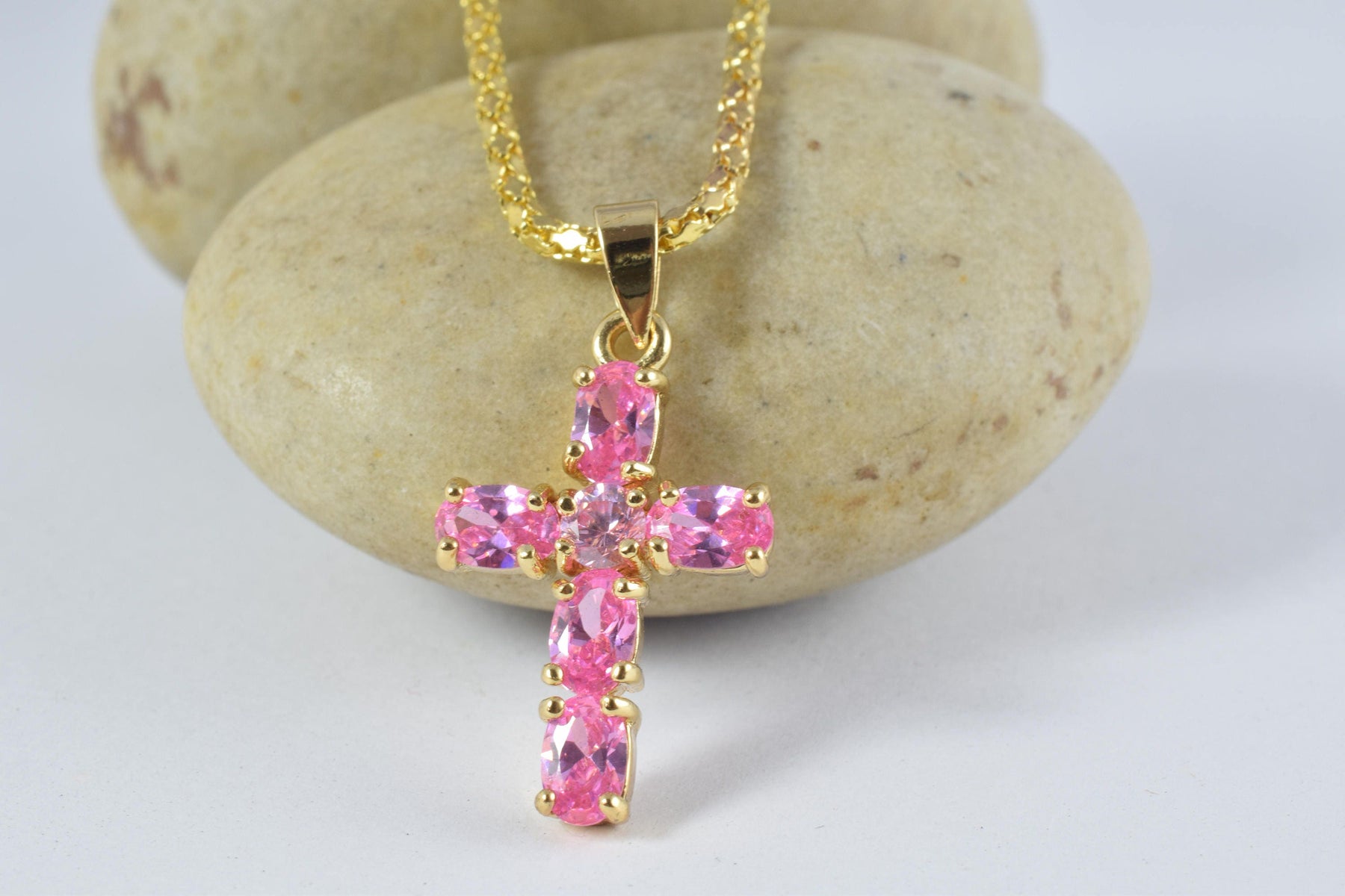 Style#1 / 17x26mm 18KT Baby Pink Cubic Zirconia Studded Cross w/bail and center stone detail design/1pc per pack/ bail size 5.5mm