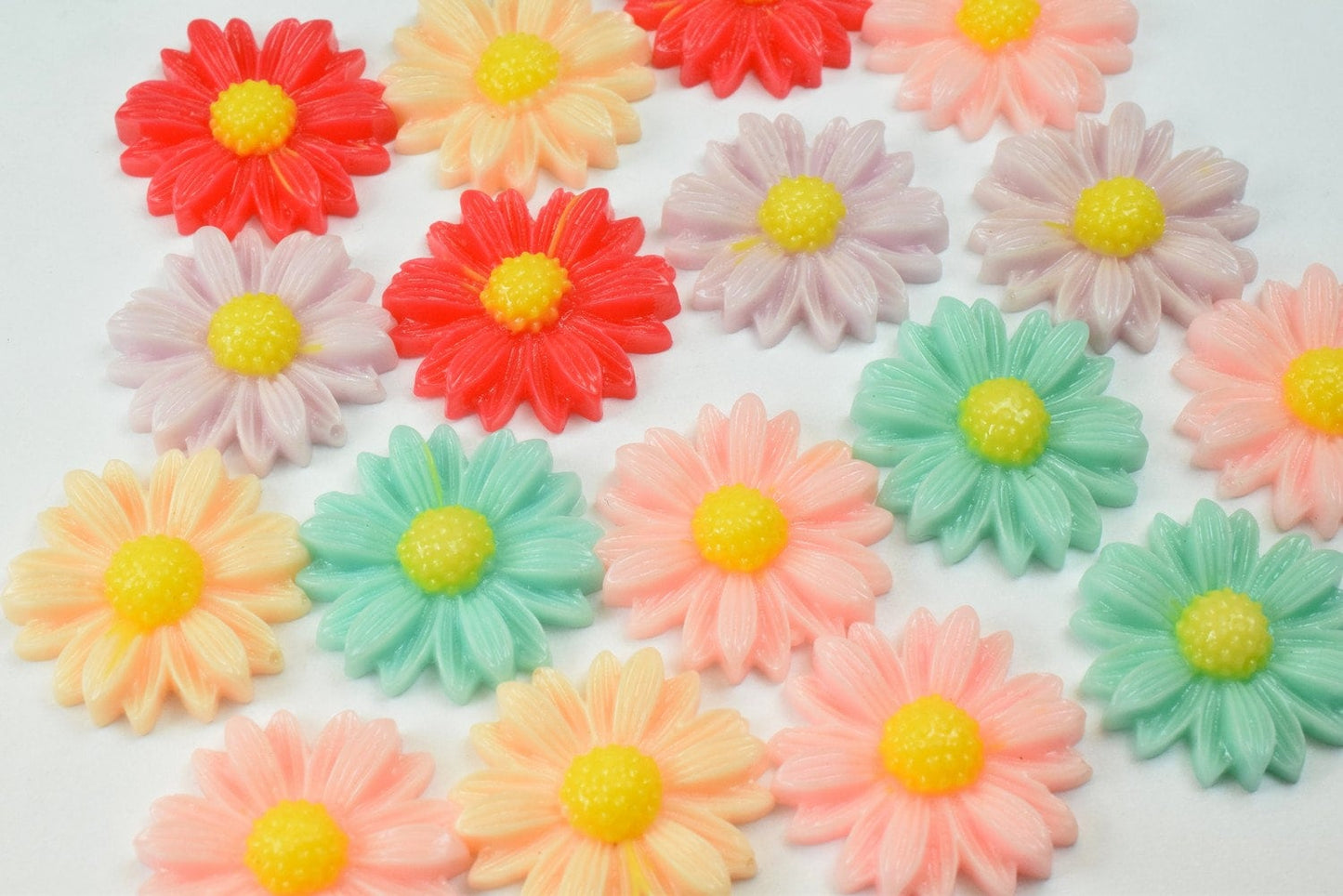 20mm Flower Cabochon Flat back Flowers Daisy Decoration Flower Embellishment Baby Shower Birthday Wedding Party Invitation For Jewelry Making