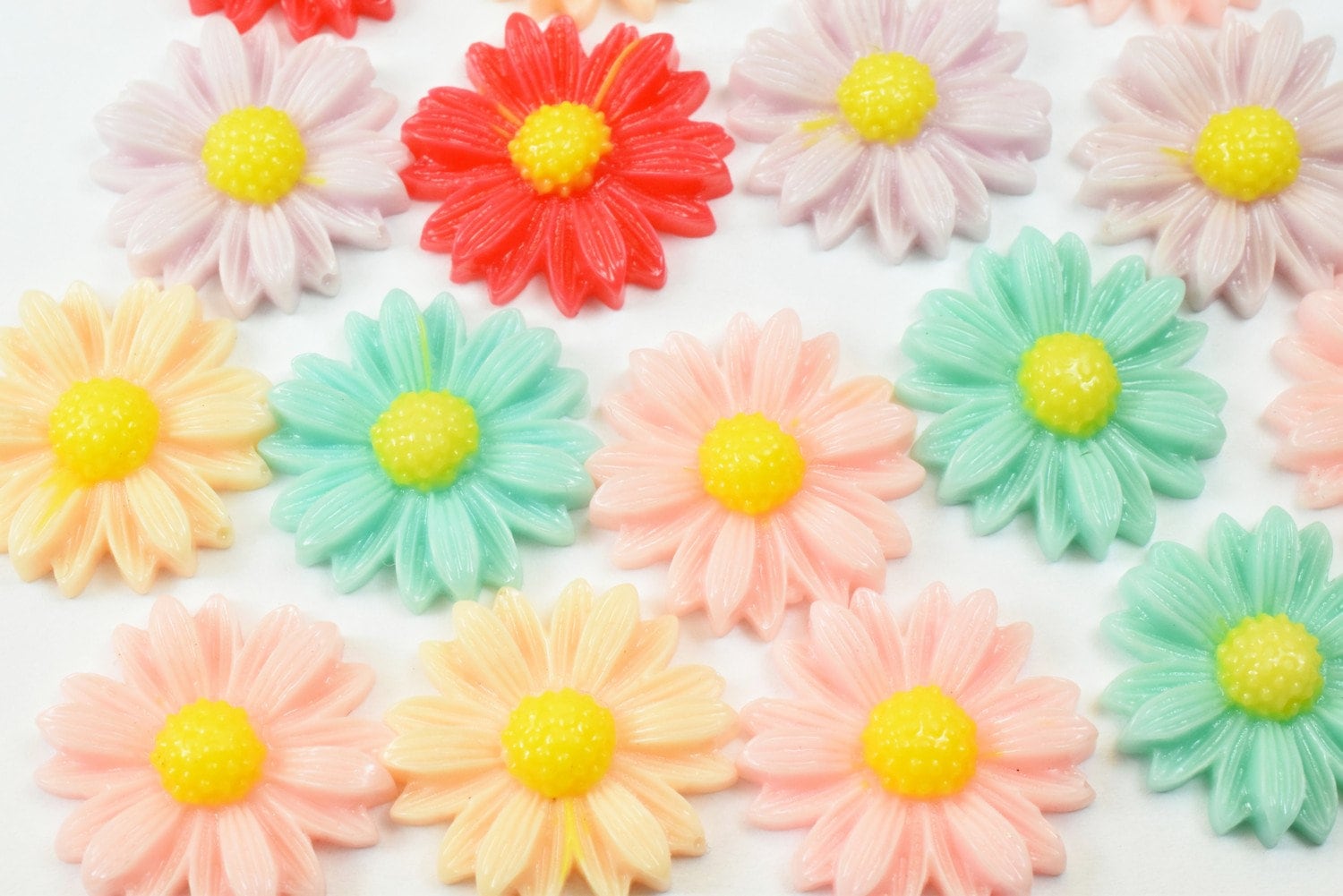 20mm Flower Cabochon Flatback Flowers Daisy Decoration Decoden Flower Baby Shower Birthday Wedding Party Invitation For Jewelry Making