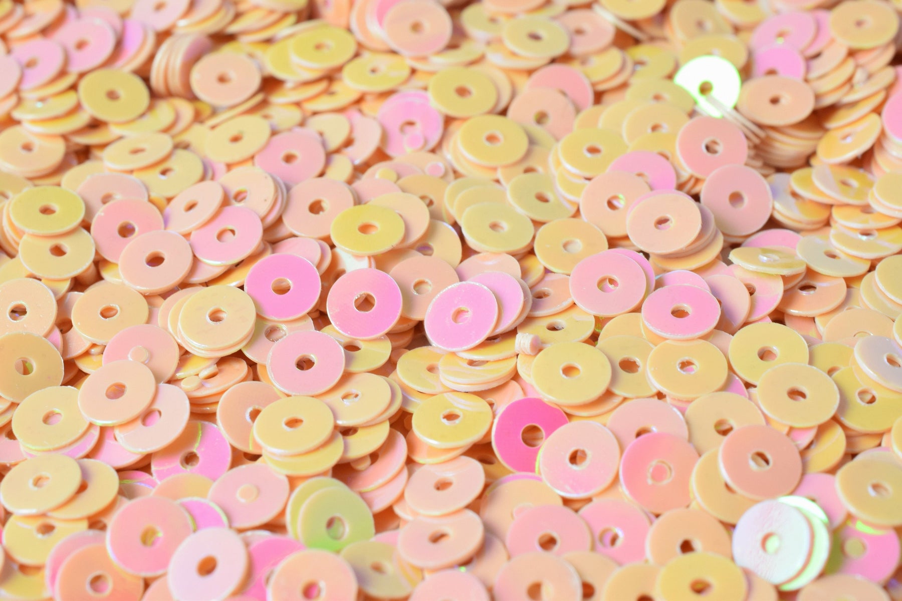 6mm Peach Baby Pink Iridescent Sequins with sparkle sheen surface great for fashion apparel making and sewing can also glue sequins to what you desire to make/2000pcs per pack/ 1 mm center hole opening/ Light weight sequins can be used to decorate for the holidays or simple make ware sparkle and shine!