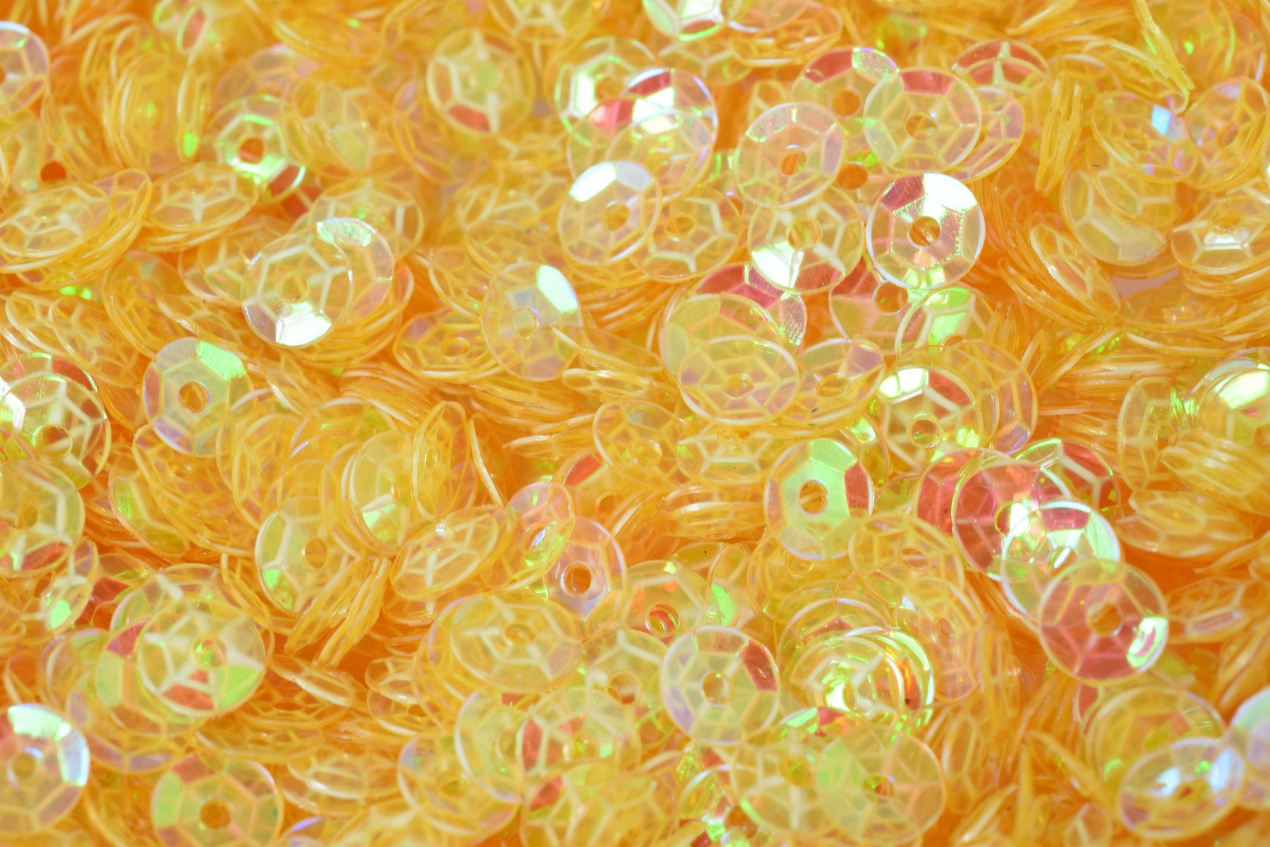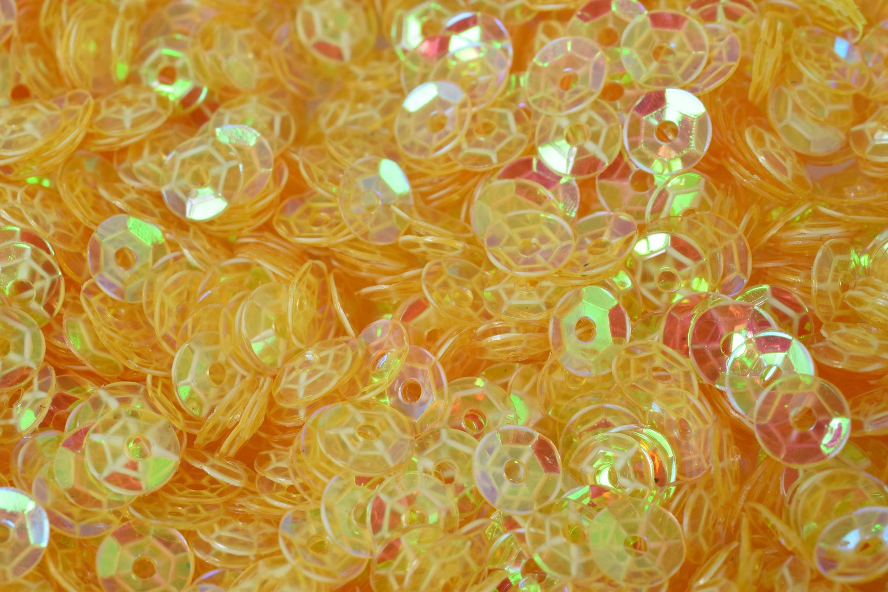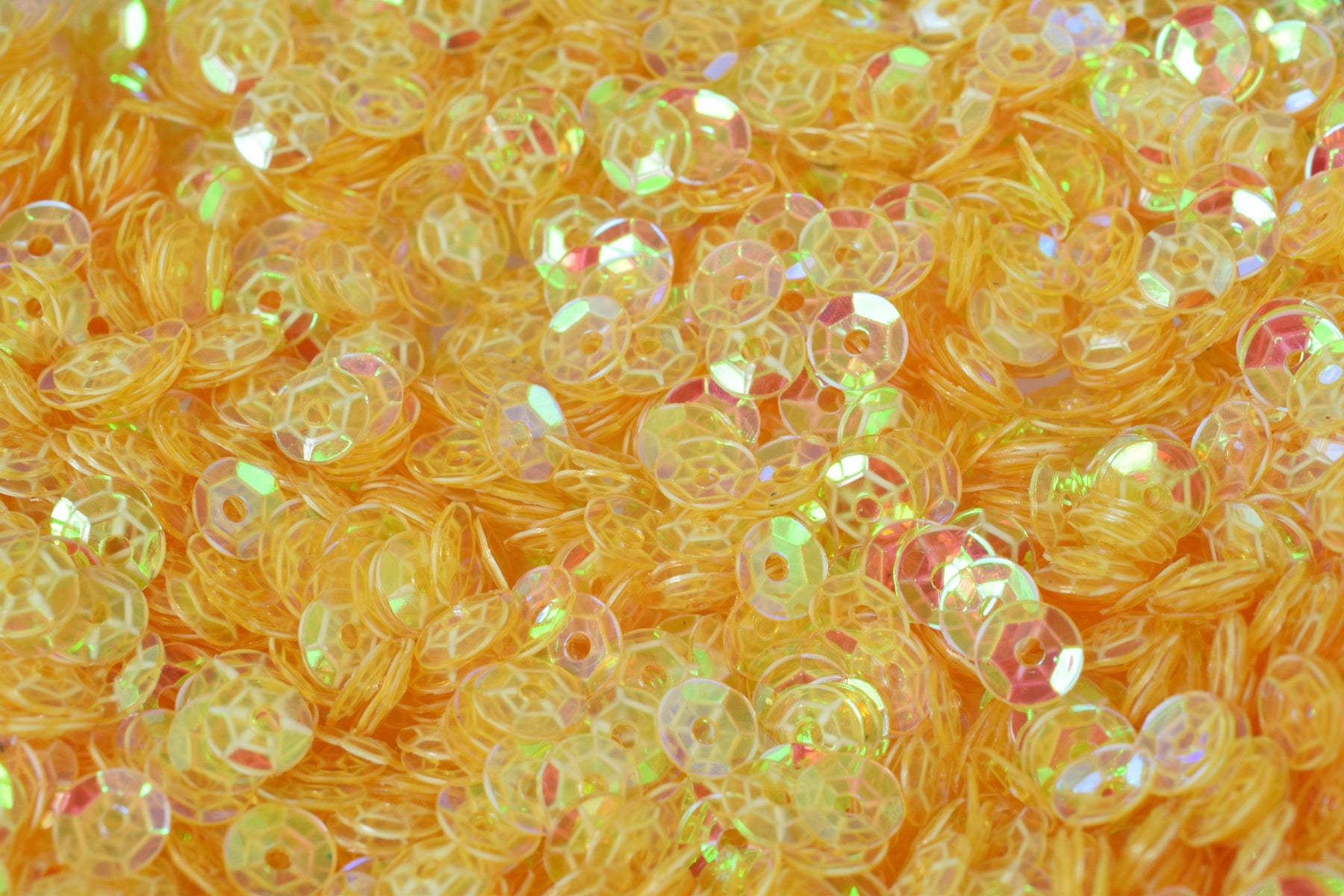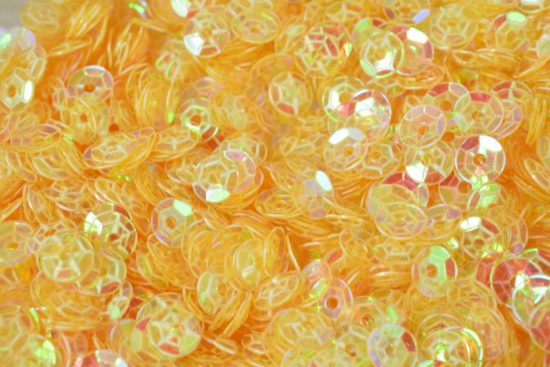 6mm Translucent Yellow Cup Glossy Iridescent Sequins Sheen Round Sequins/Sheen Round Sequins Sheen Round Sequins/ Sequins with sparkle sheen surface great for fashion apparel making and sewing can also glue sequins to what you desire to make/2000pcs per pack/ 1 mm center hole opening/ Light weight sequins can be used to decorate for the holidays or simple make ware sparkle and shine!