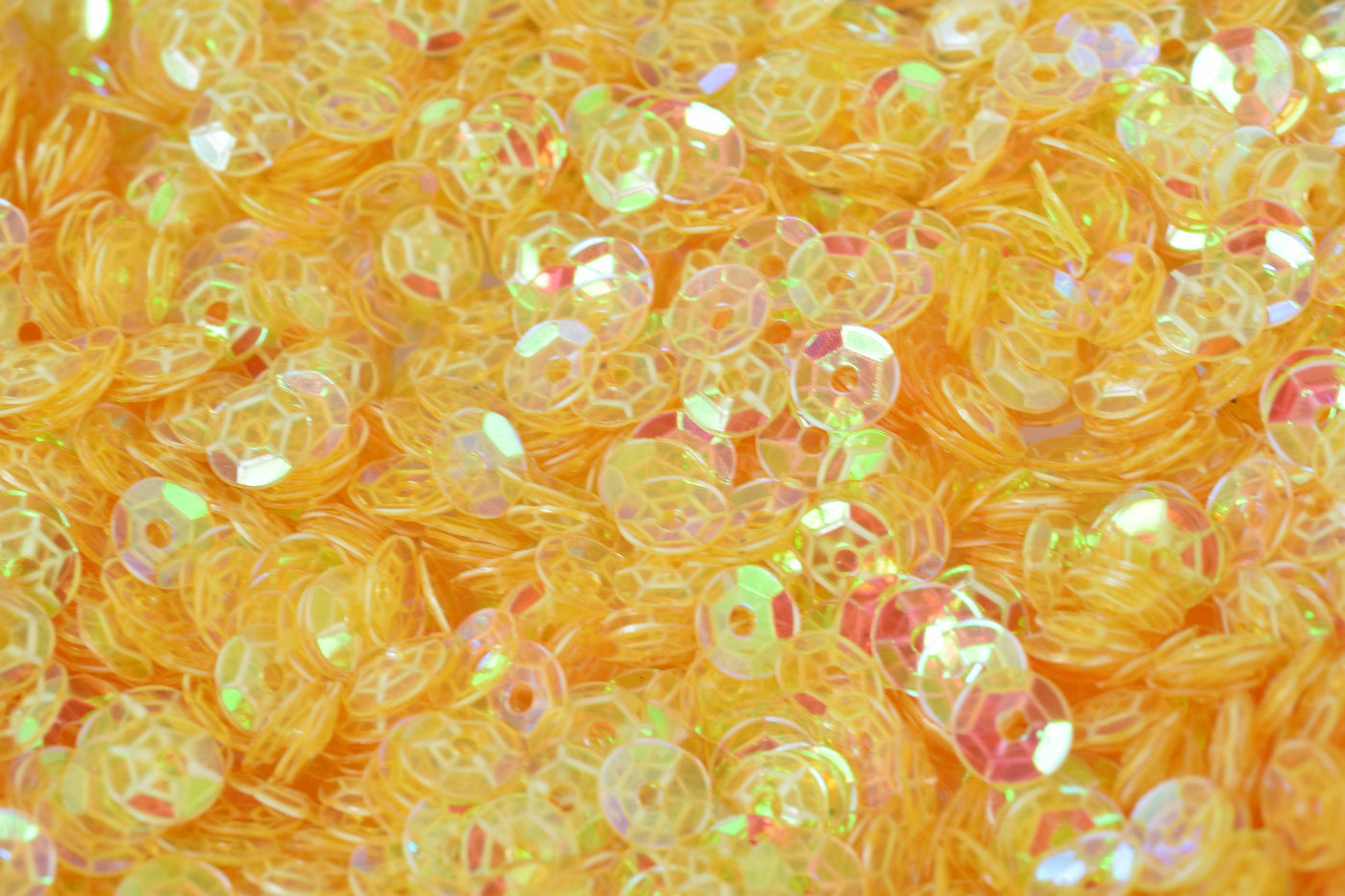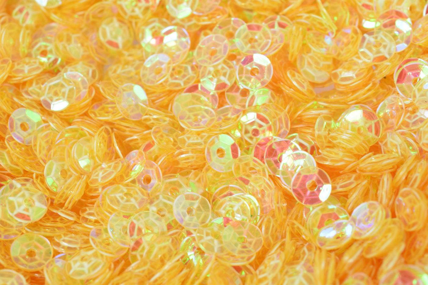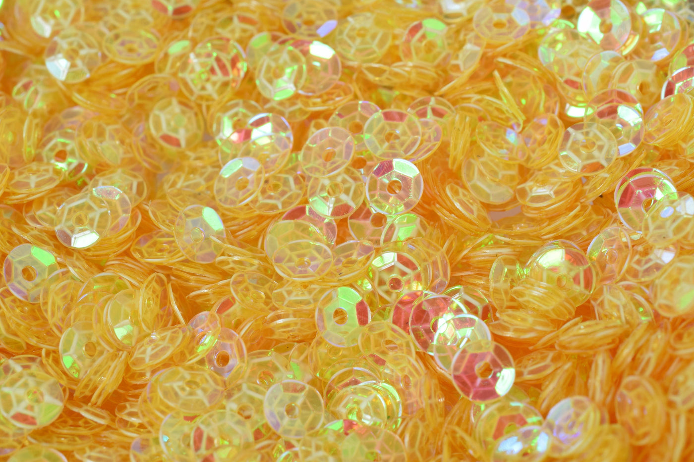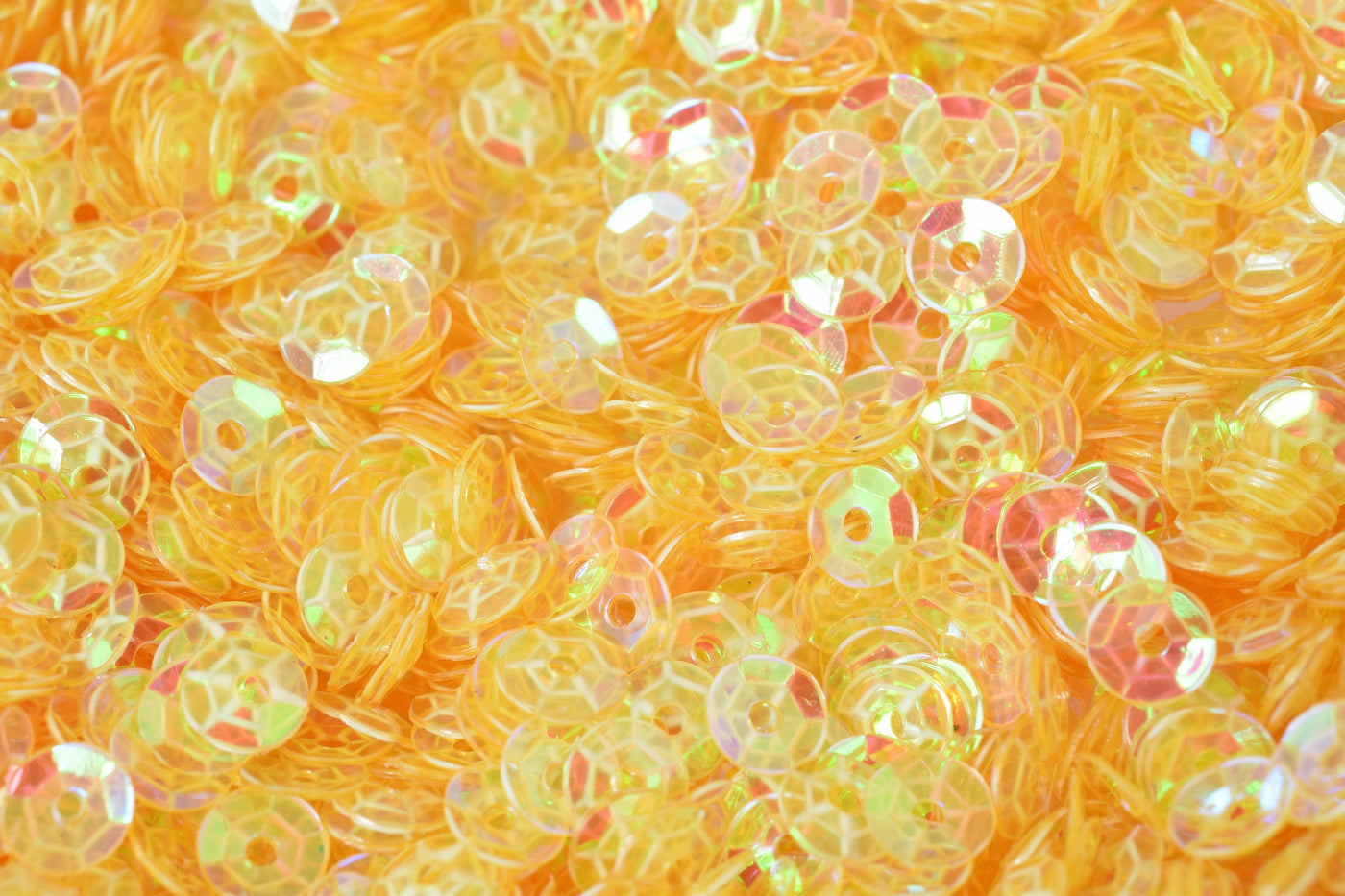 6mm Translucent Yellow Cup Glossy Iridescent Sequins Sheen Round Sequins/Sheen Round Sequins Sheen Round Sequins/ Sequins with sparkle sheen surface great for fashion apparel making and sewing can also glue sequins to what you desire to make/2000pcs per pack/ 1 mm center hole opening/ Light weight sequins can be used to decorate for the holidays or simple make ware sparkle and shine!