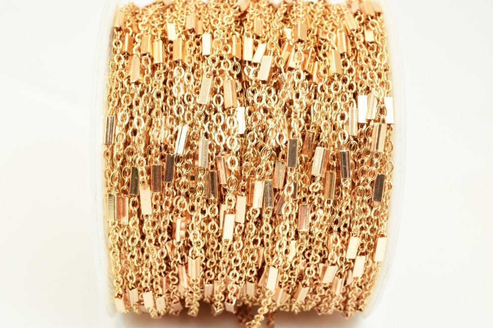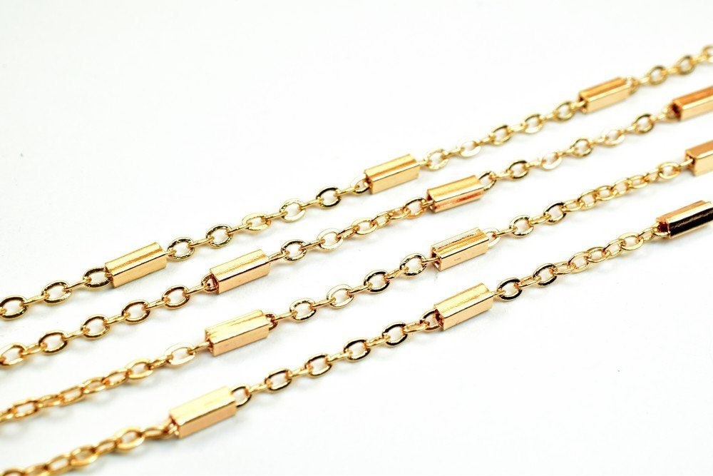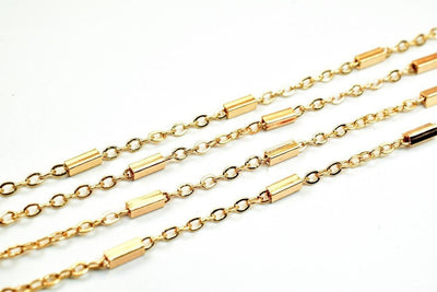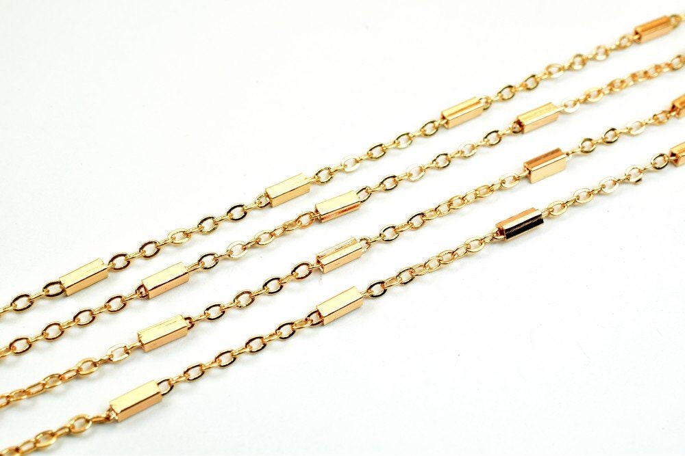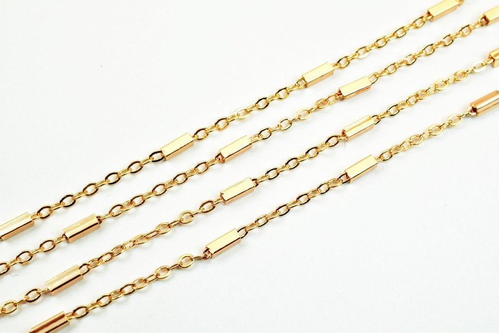 3 Feet 18K Gold Filled Bar Chain, Cable Chain Width 1mm Thickness 0.25mm Gold-Filled finding for Gold Filled Jewelry Making PGF08