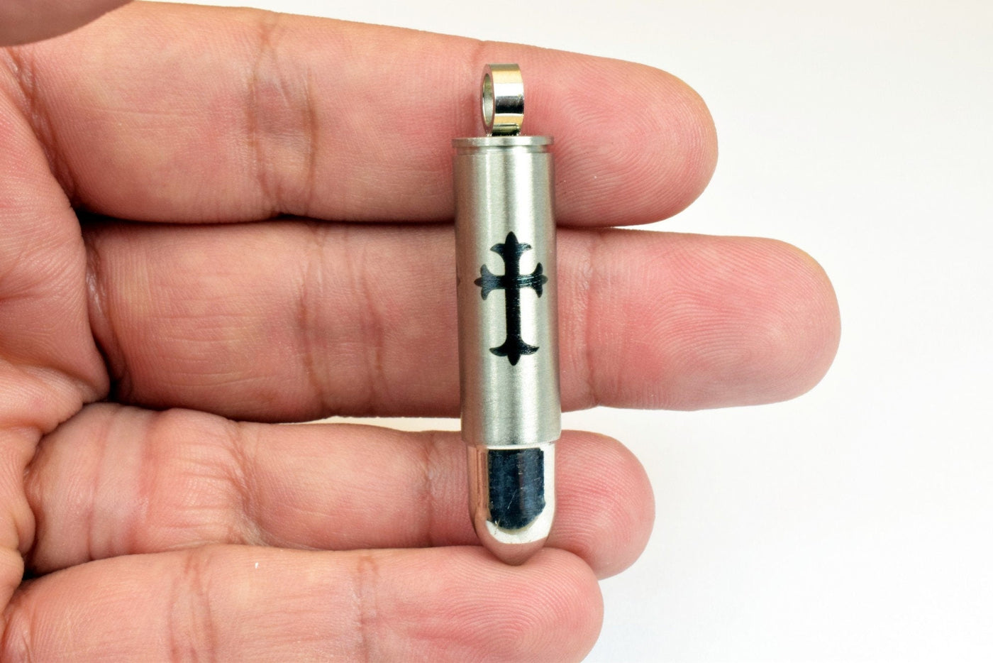 304 Stainless Steel Bullet Pendant with Black Cross – Masculine Stainless Alternative