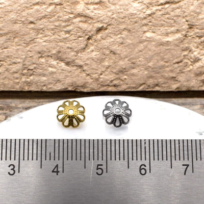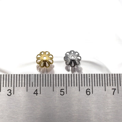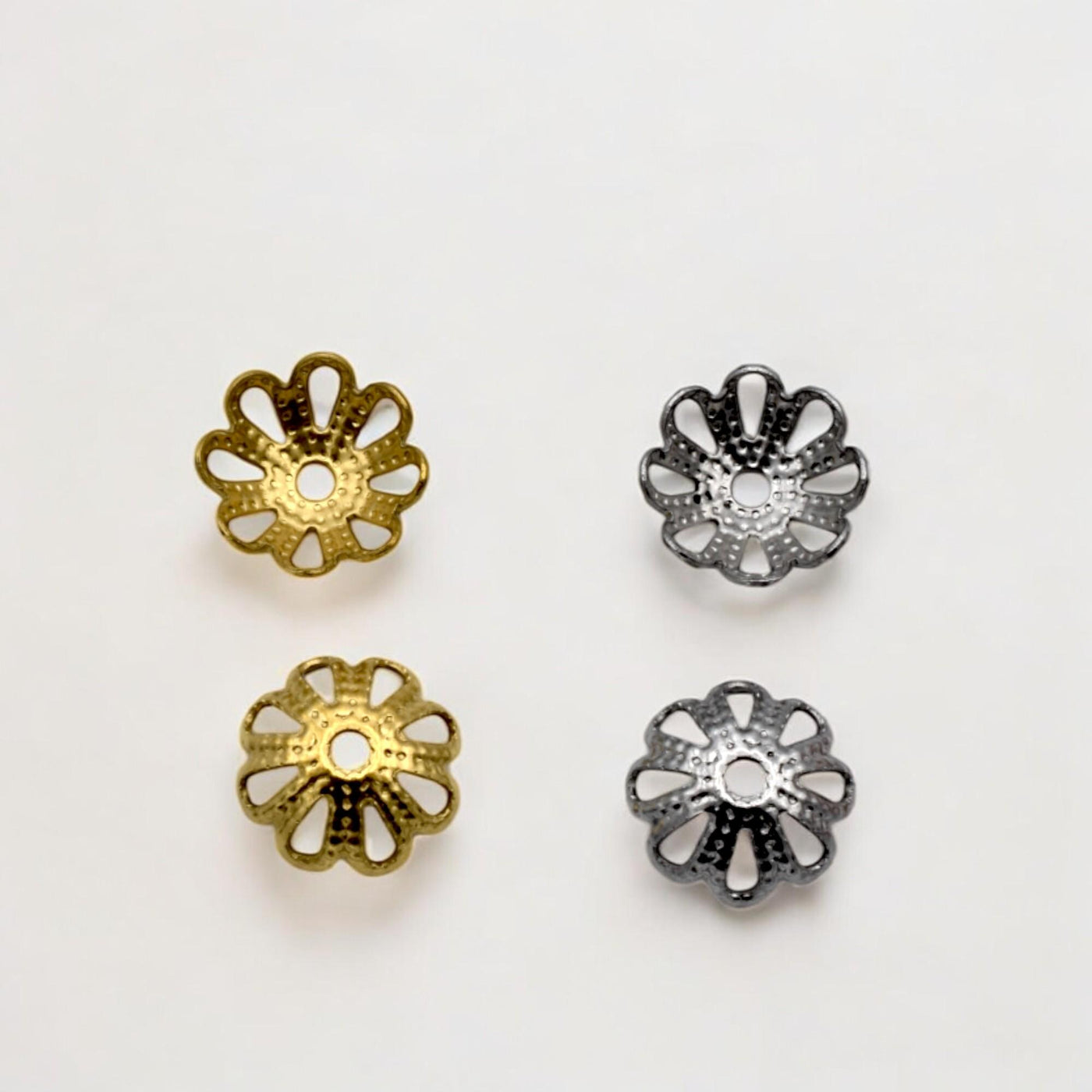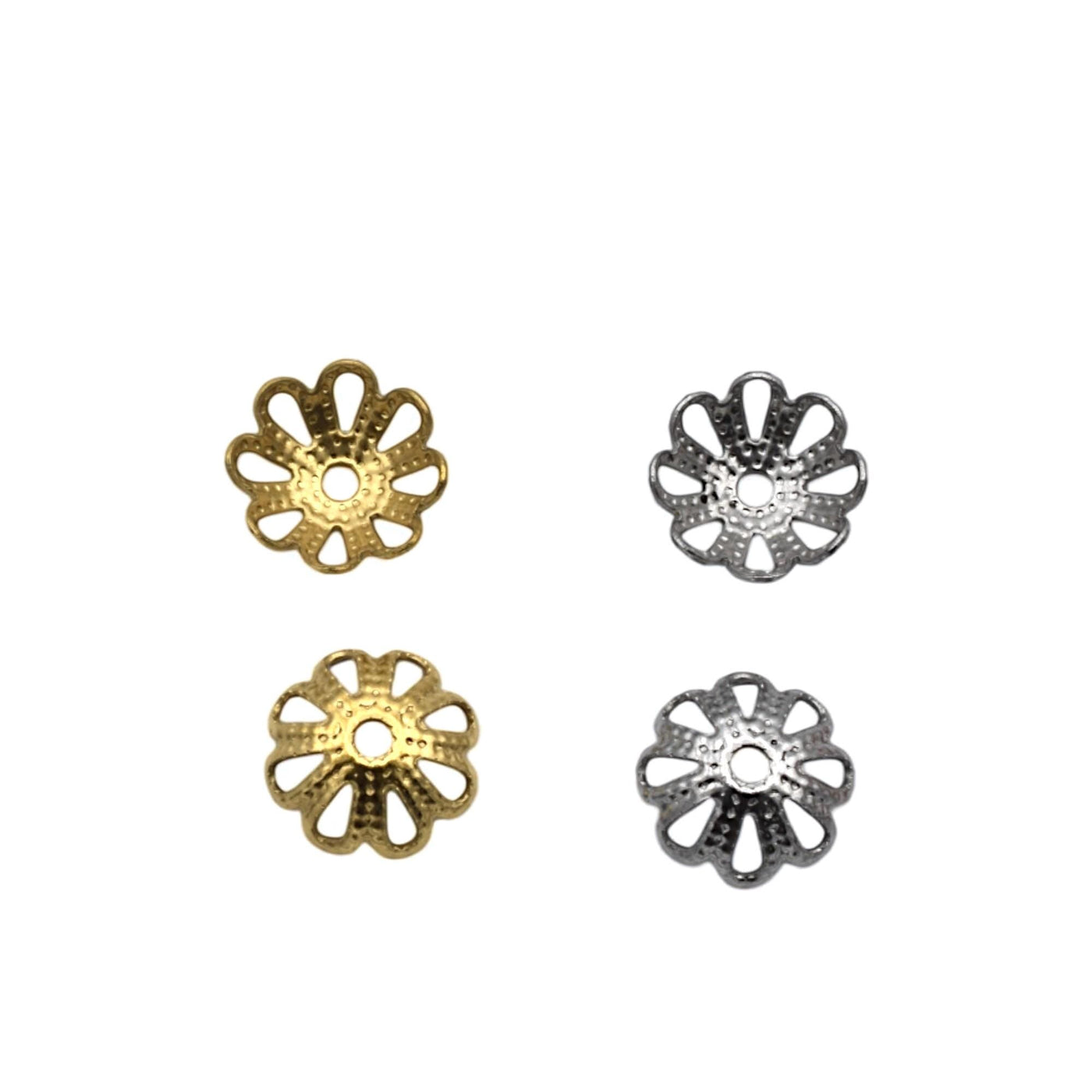 Add a delicate floral touch to your beading projects with these beautiful flower-shaped bead caps. Crafted from lightweight Stainless Steel in gold and silver tones, these 7 mm filigree caps are perfect for enhancing round beads, pearls, or gemstone designs. Use them as elegant end caps or spacers in your earrings, bracelets, necklaces, or other handmade jewelry creations. These bead caps are a must-have for both beginner and professional jewelry makers.
