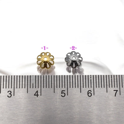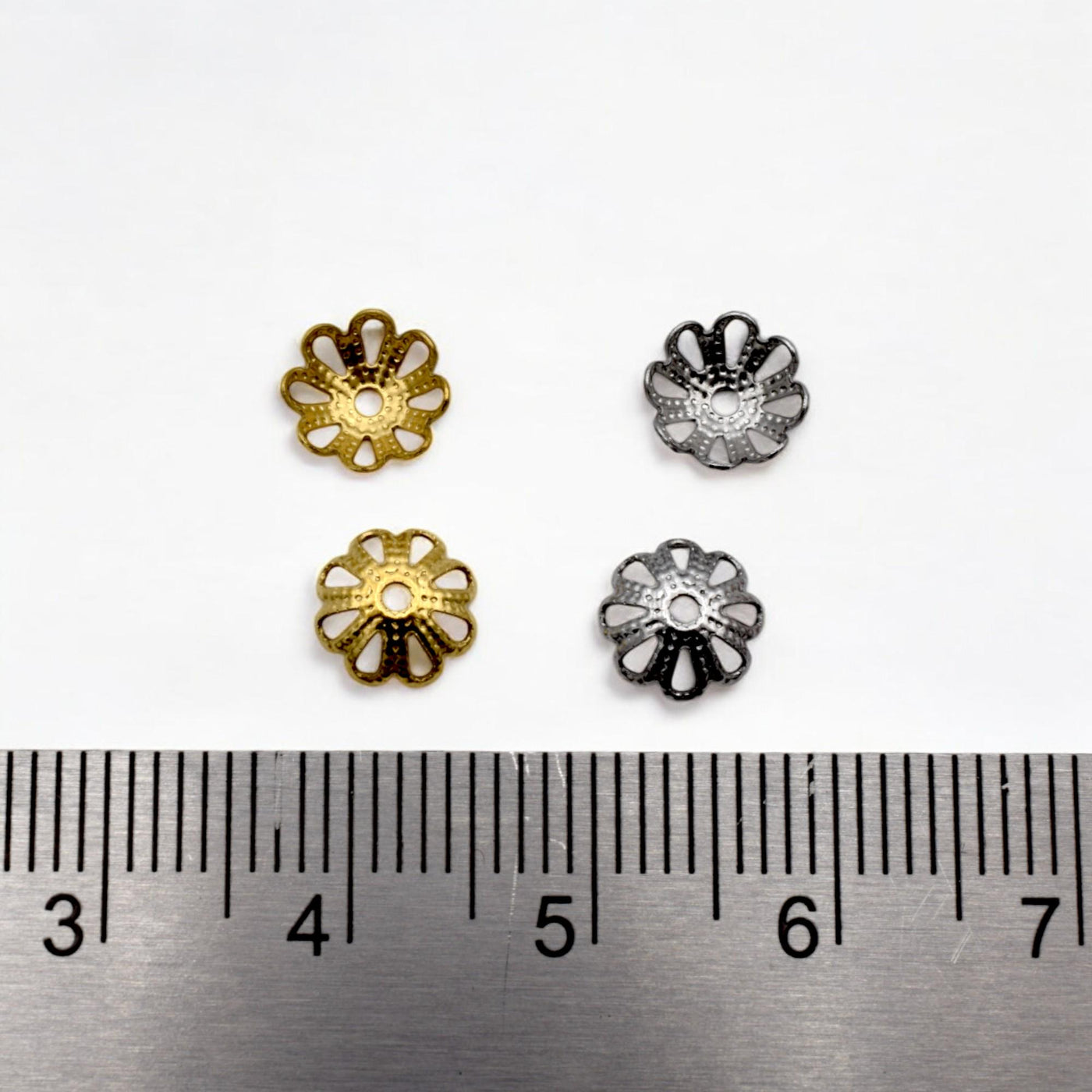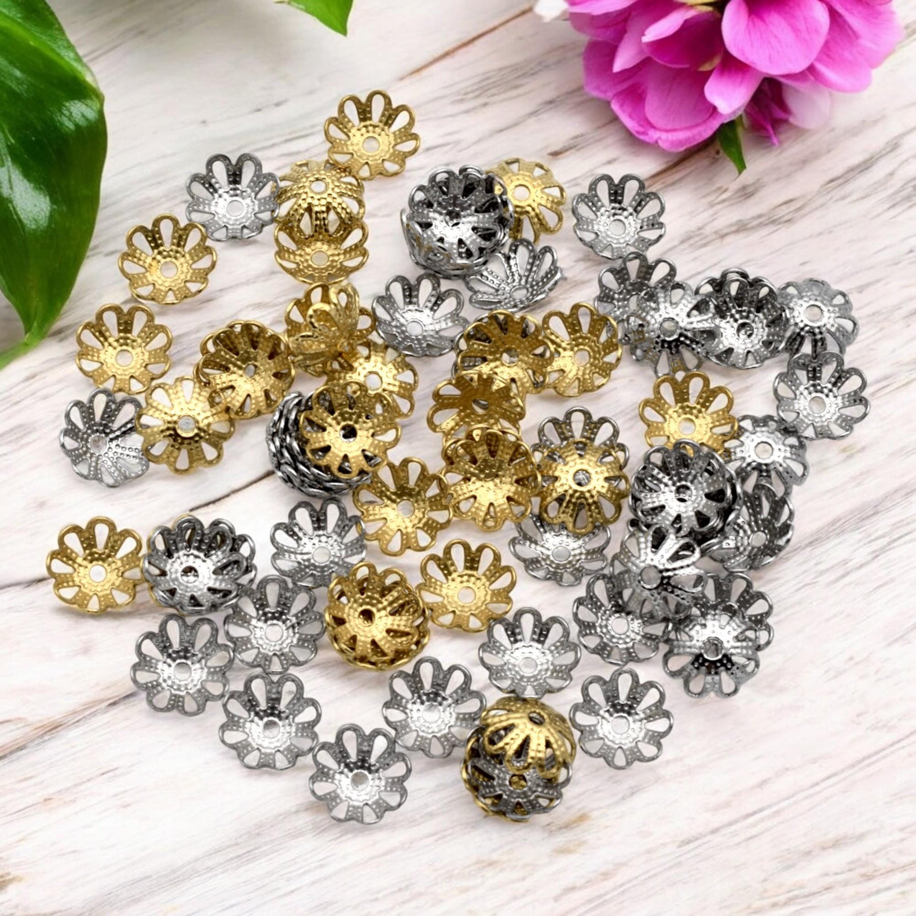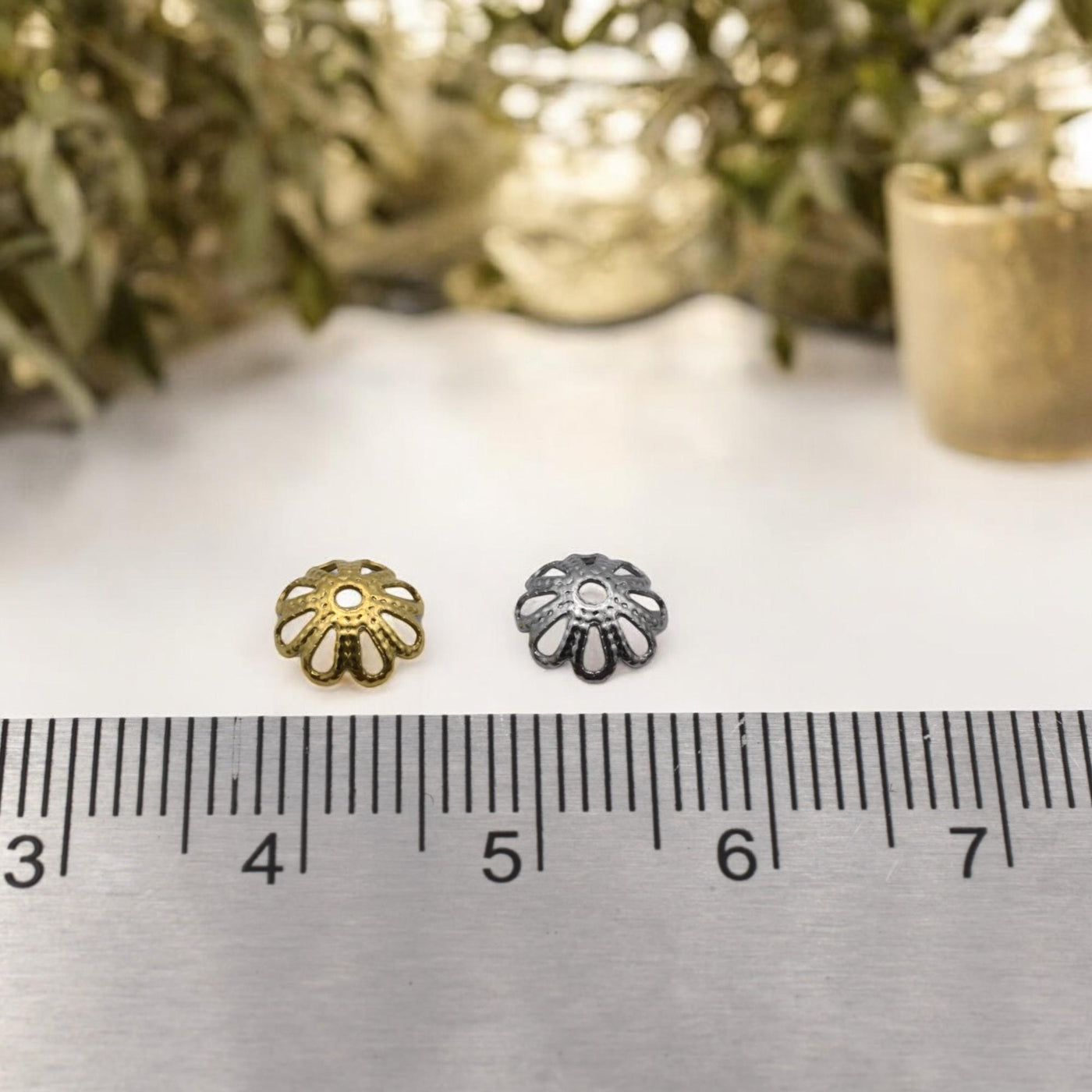 Add a delicate floral touch to your beading projects with these beautiful flower-shaped bead caps. Crafted from lightweight Stainless Steel in gold and silver tones, these 7 mm filigree caps are perfect for enhancing round beads, pearls, or gemstone designs. Use them as elegant end caps or spacers in your earrings, bracelets, necklaces, or other handmade jewelry creations. These bead caps are a must-have for both beginner and professional jewelry makers.