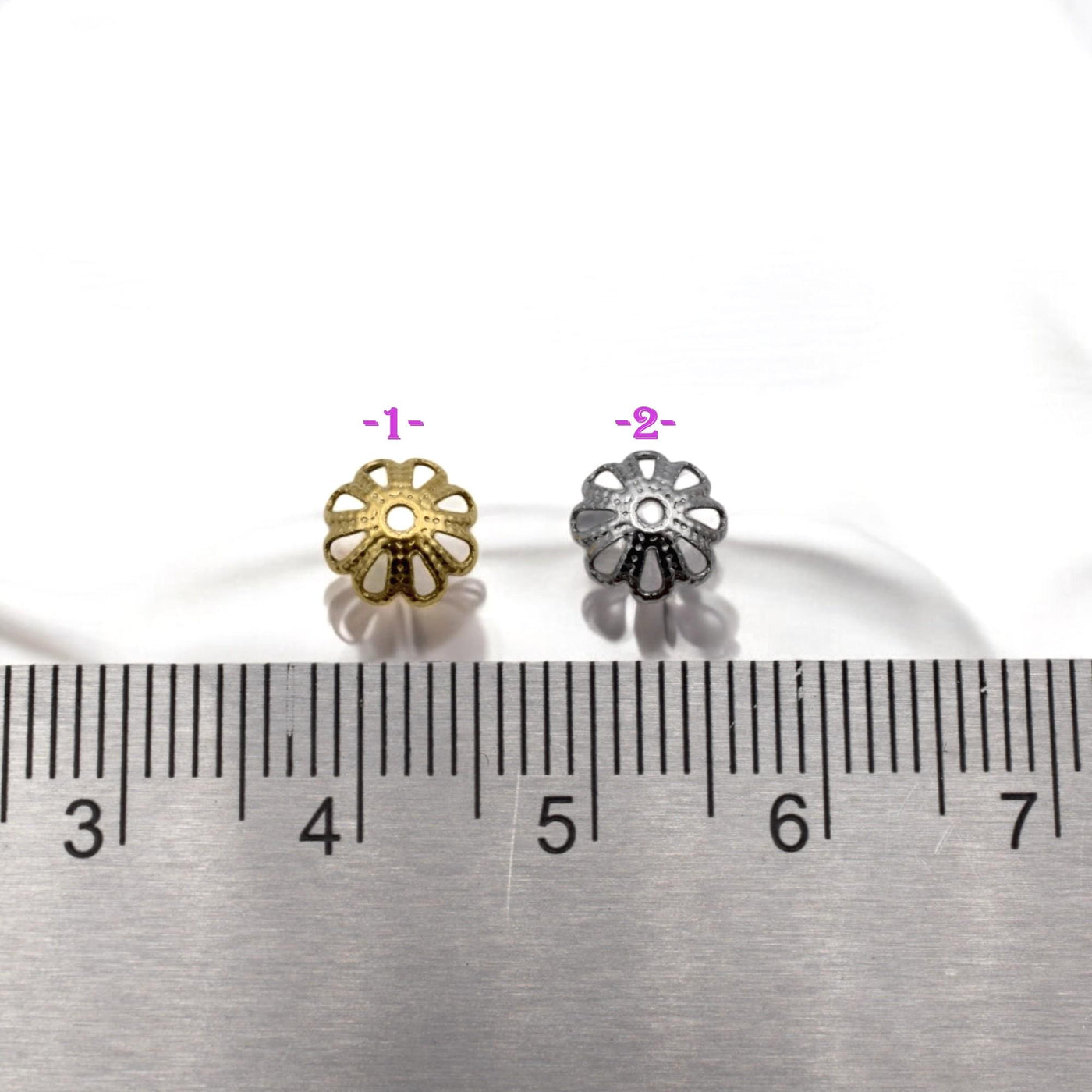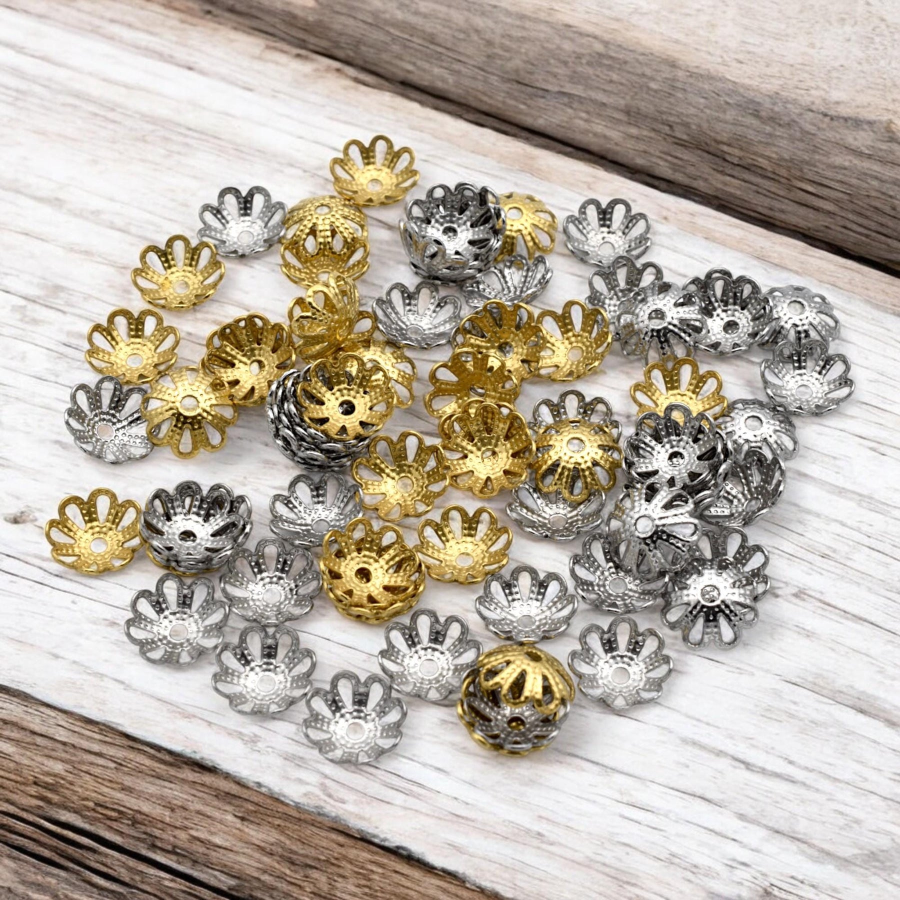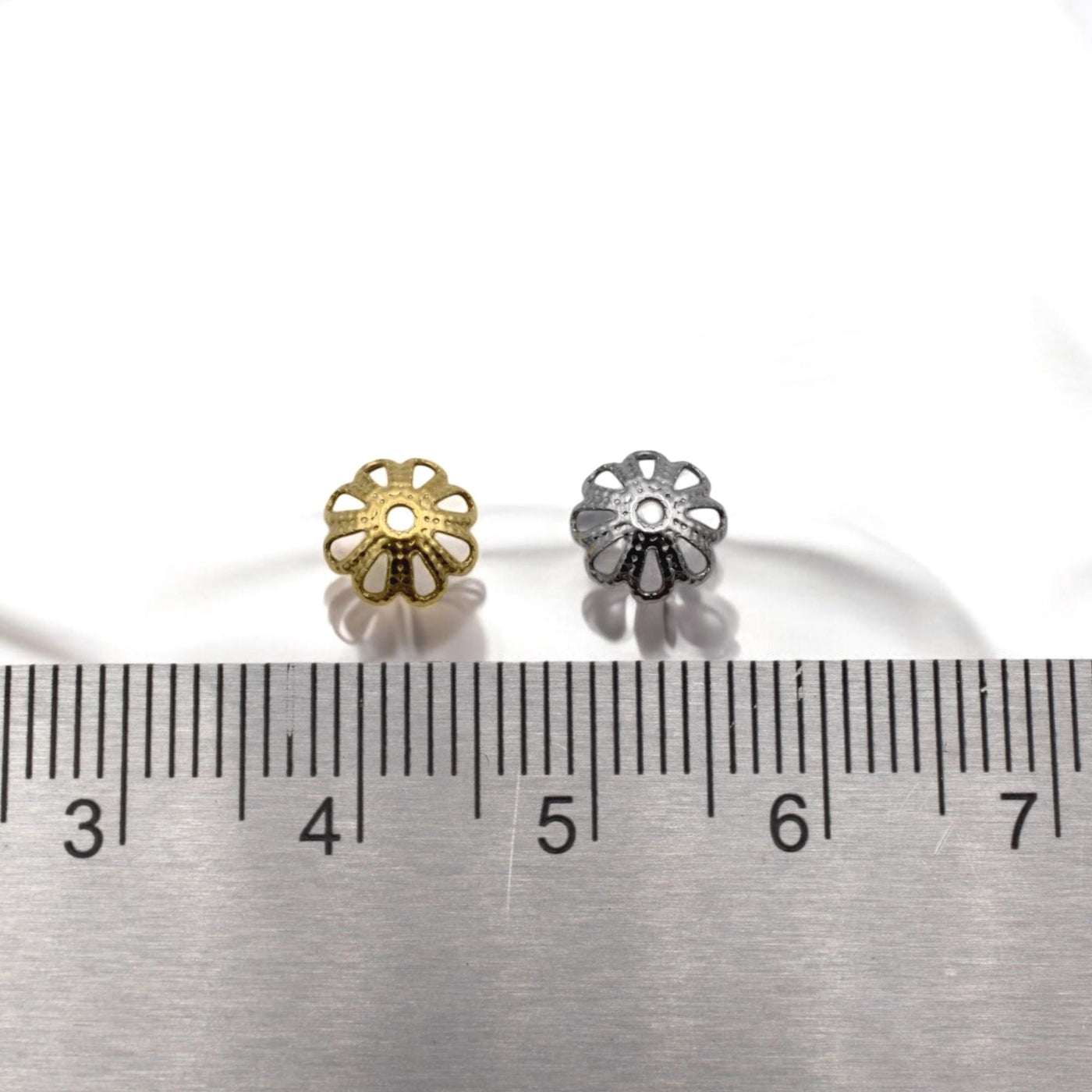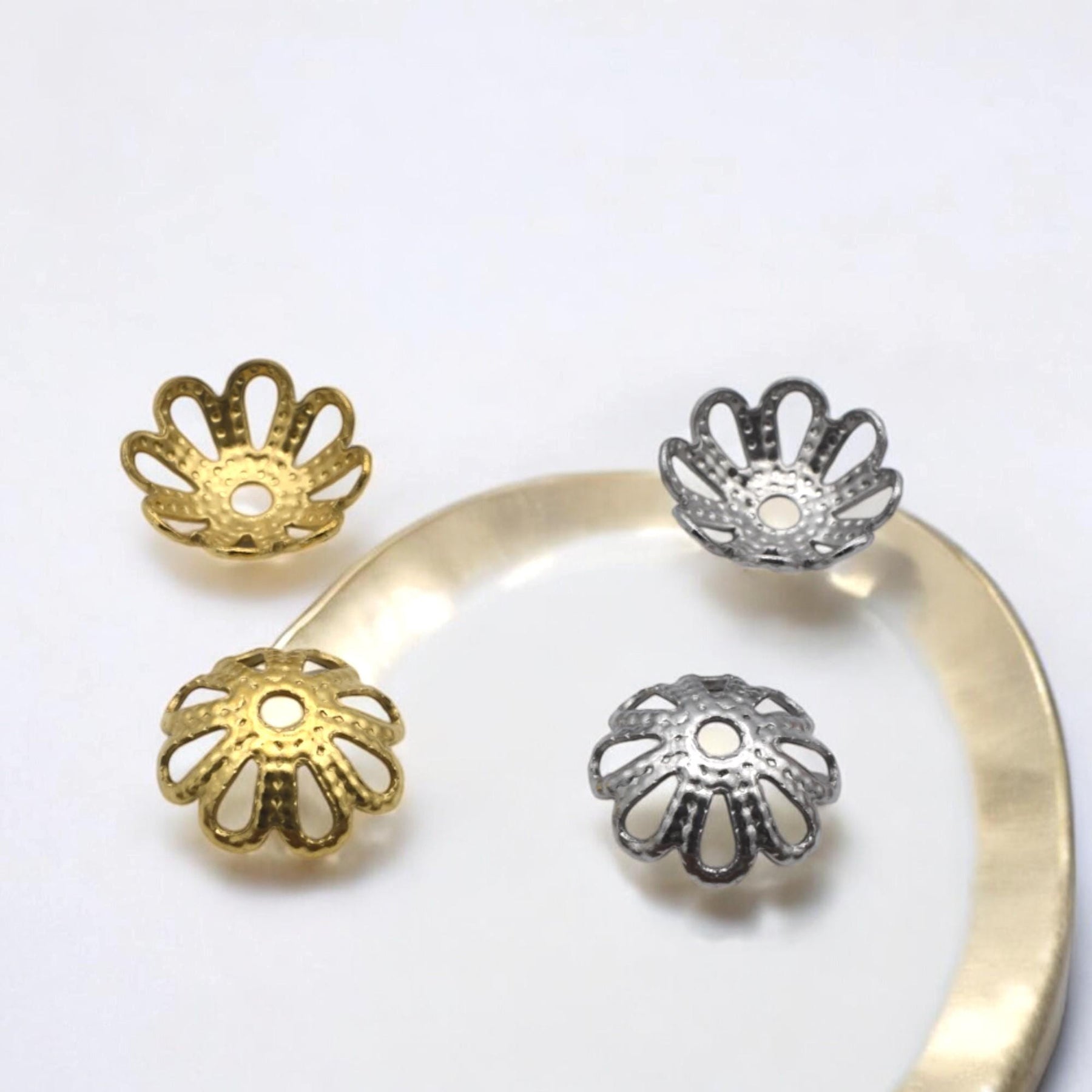 Flower Bead Caps – Gold & Silver Tone Stainless Steel Bead Cones for Jewelry Making, 7mm Filigree Spacer Caps, DIY Craft F...