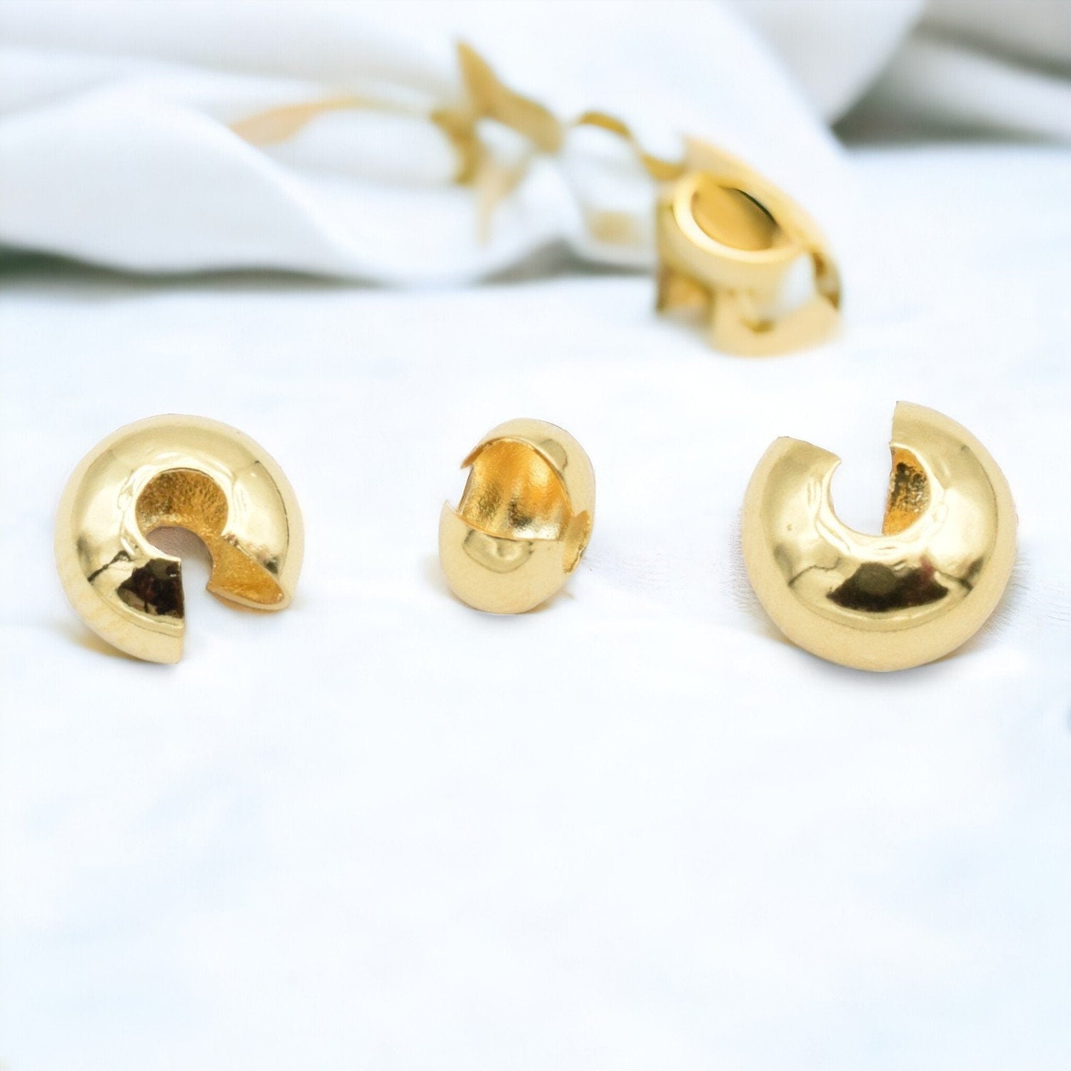 Enhance your jewelry creations with our Gold Filled 14k Crimp Covers. Each crimp cover features an EP durable finish, ensuring long-lasting shine and resilience. Perfect for concealing unsightly crimps and adding a professional touch to your bracelets, necklaces, and other handmade pieces, these crimp covers are a must-have for any jewelry maker.