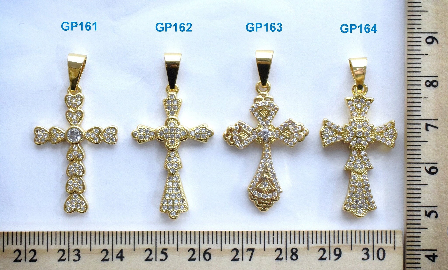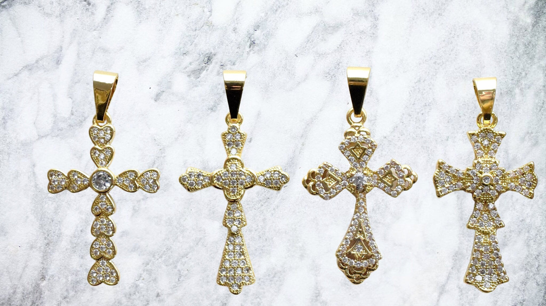 Gold Filled Look, EP tarnish resistant Round CZ Pave Cross Pendant jewelry making supplies