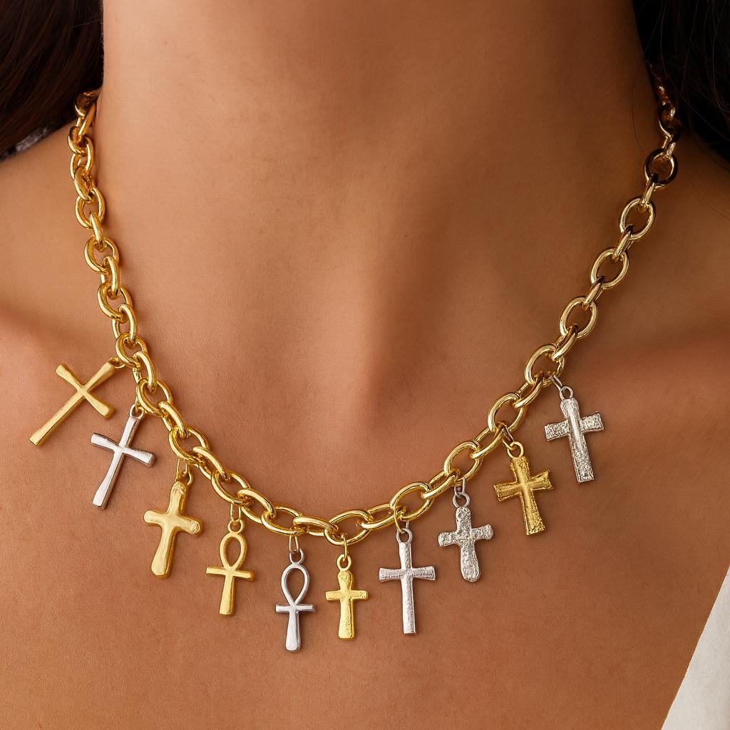 Assorted crosses and ankhs in warm gold‑tone and cool silver‑tone —perfect focal pieces or accent dangles for faith‑inspired jewelry.