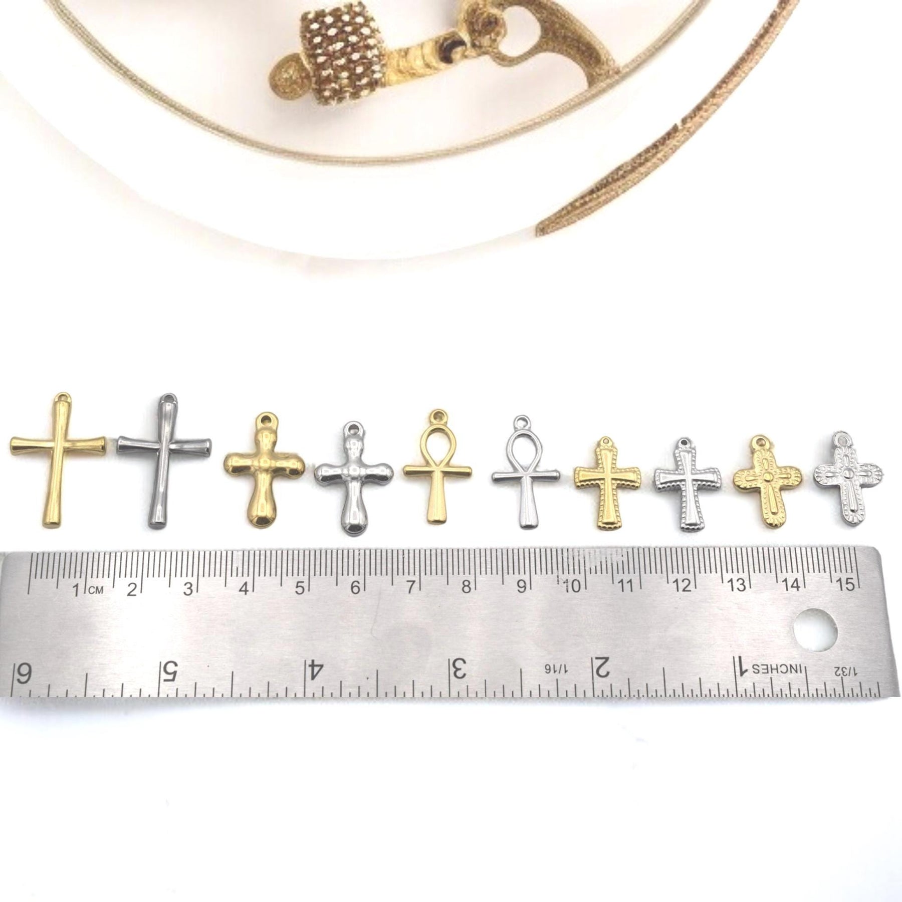 Gold or Silver Stainless Steel Cross and Egyptian Ankh Charm – 12pcs/ pk Religious Pendant Findings   DIY Jewelry Rosary,...