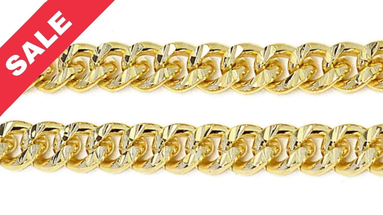 Gold Plated Cuban Chain Diamond Cut 14K Size 7mm/9mm for Jewelry Making GFC123/GFC124 Sold by Foot