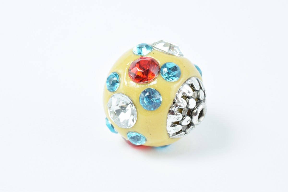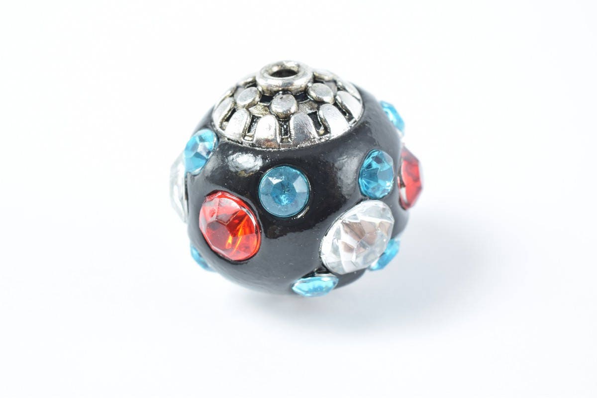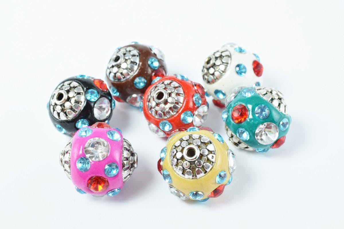 Indonesian Kashmir Clay Beads Handmade Beads 4 PCs, Bohemian Bali Style Jewelry Making Decorative Round Beads jewelry maki...