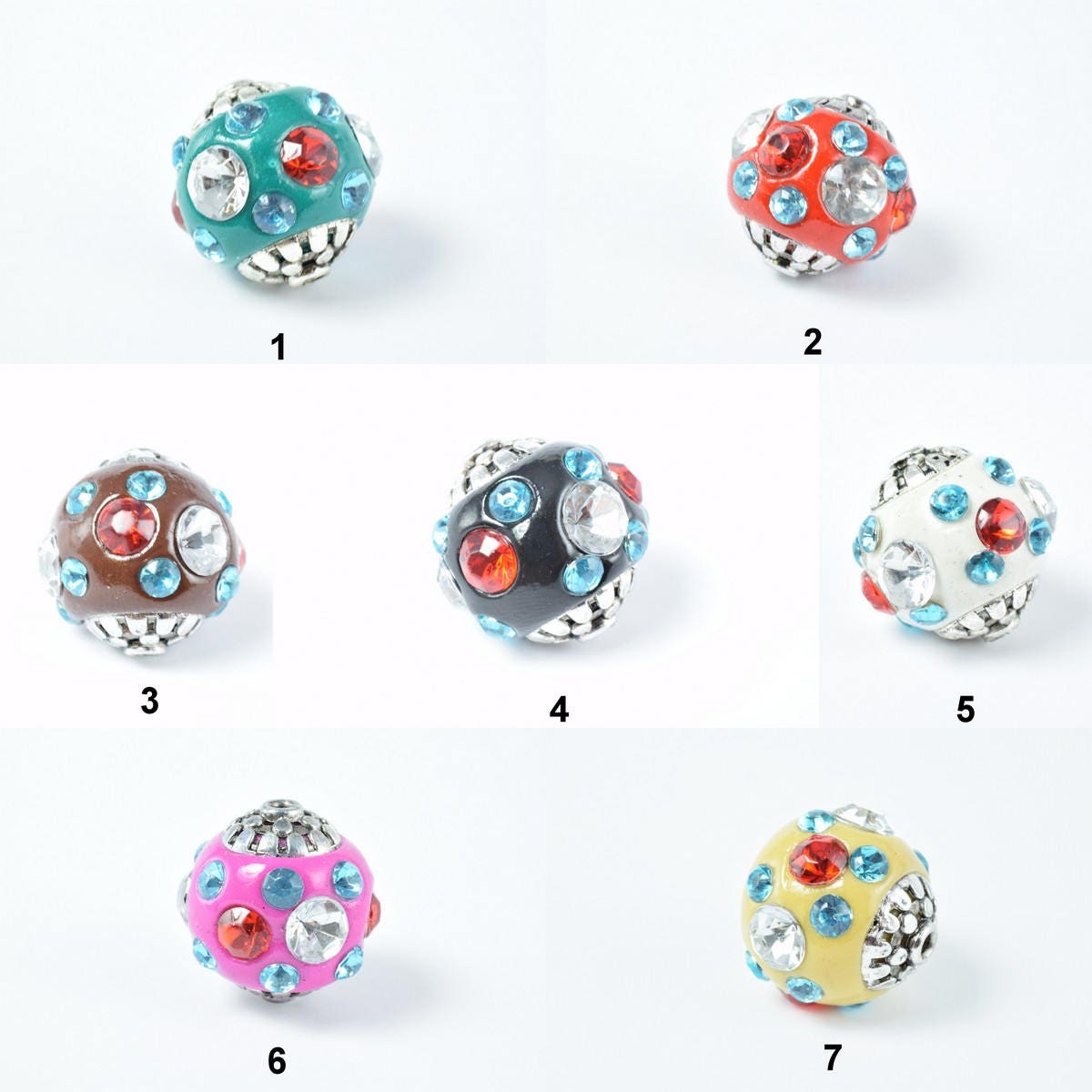 Indonesian Kashmir Clay Beads Handmade Beads 4 PCs, Bohemian Bali Style Jewelry Making Decorative Round Beads 7 Colors