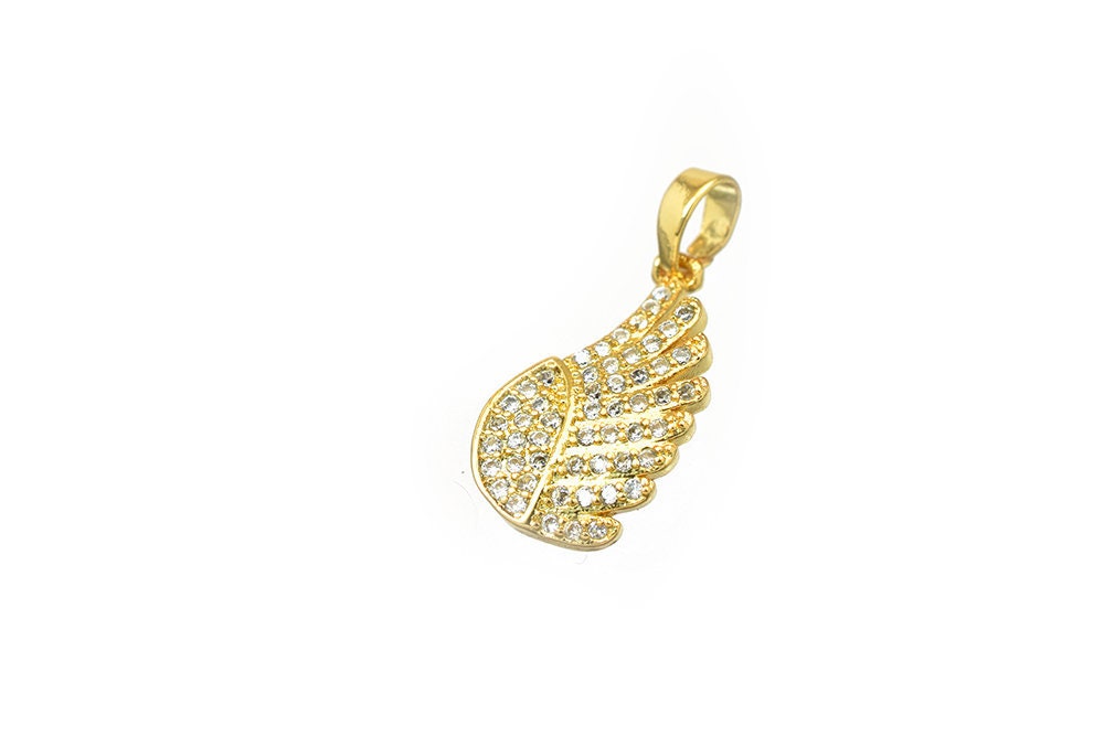 Rhinestone Wing Charm Pendant 18K Gold Filled Alternative - Tarnish Resistant Micro Pave CZ Bead