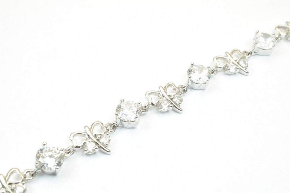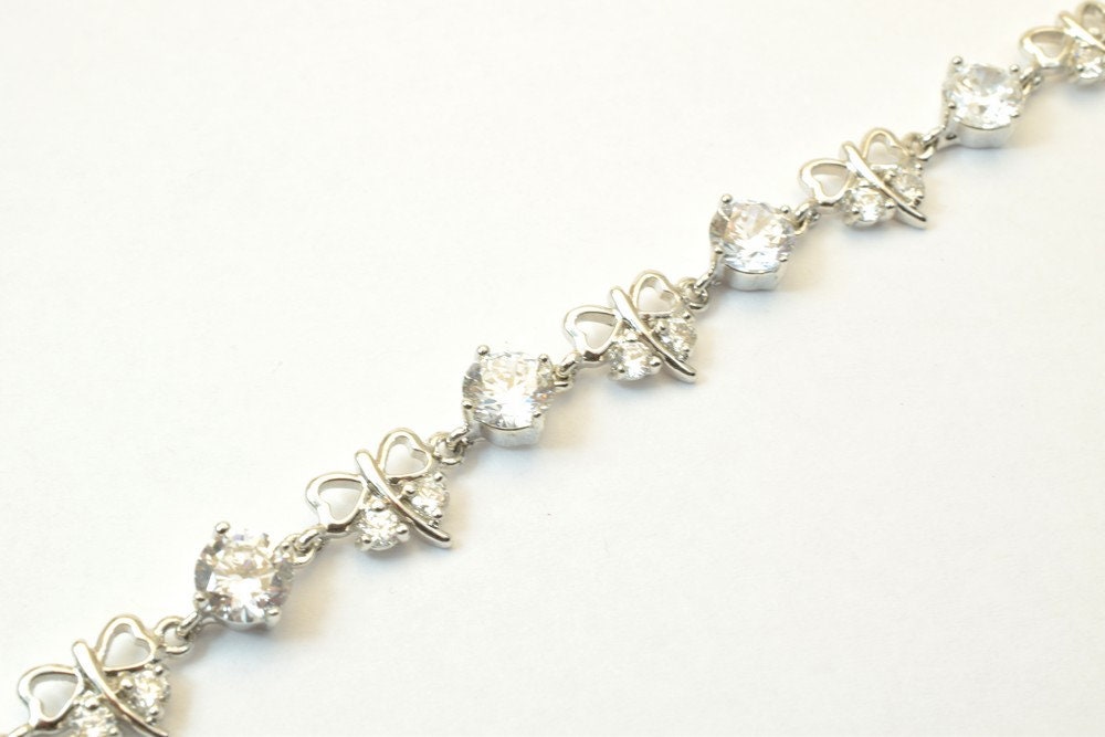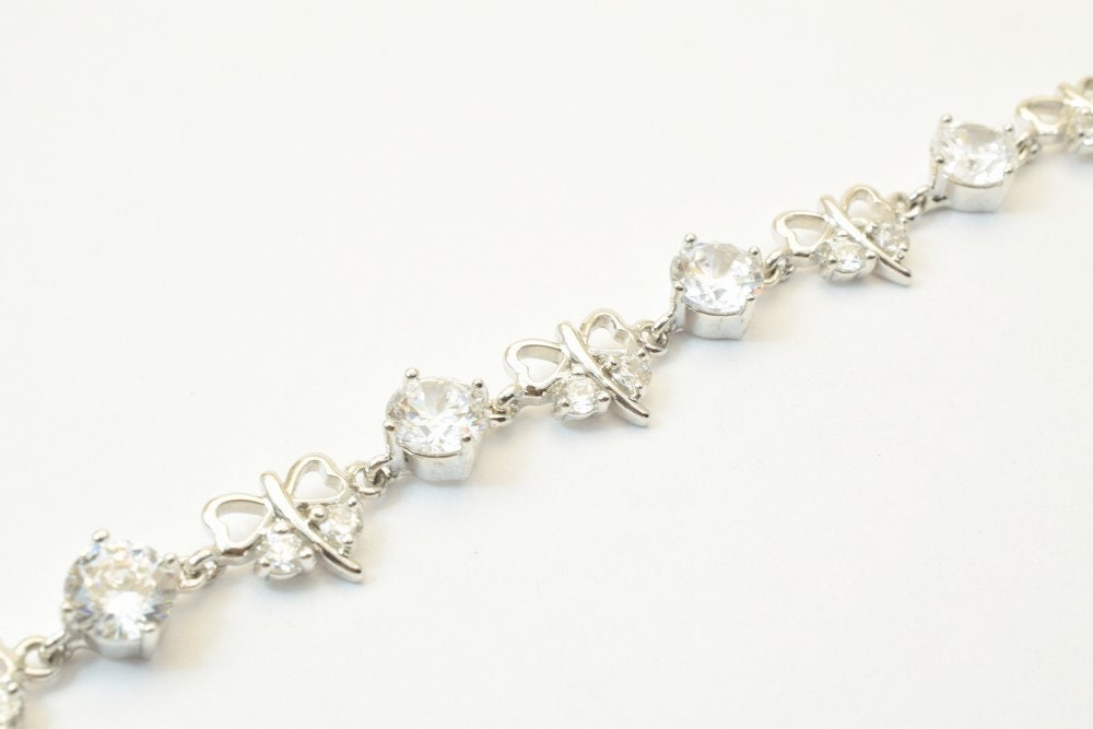 Tennis Bracelet 12K White as Gold Filled* Rhodium Chain With Cubic Zircon Size 6.75" Inches Bling Bling Jewelry Making Ite...