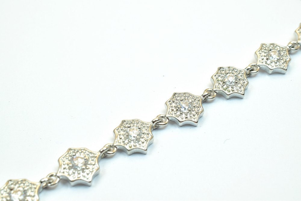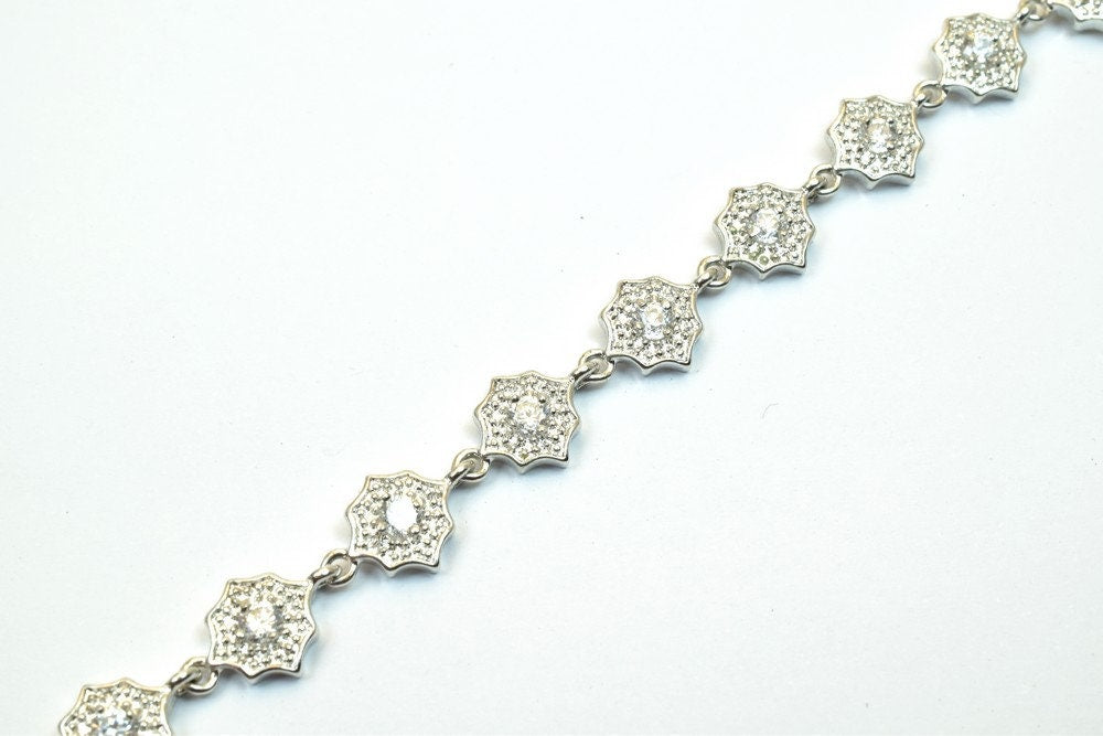 Tennis Bracelet Rhodium Plated Chain With Cubic Zirconia Size 6.5" Inches Bling Bling Bohemian Jewelry Making Item
