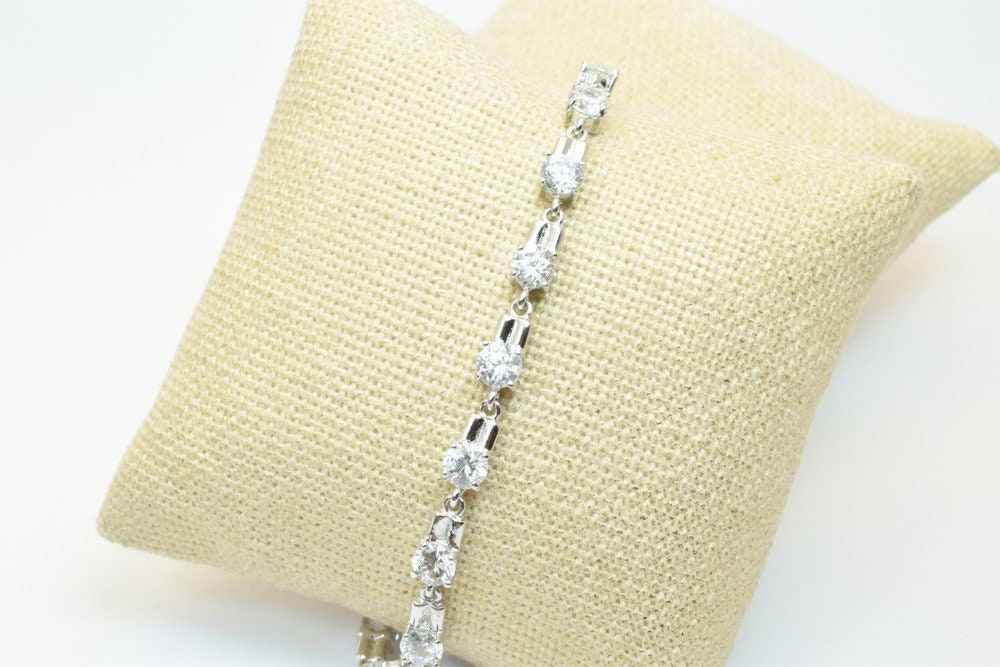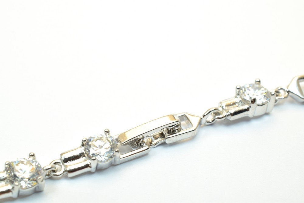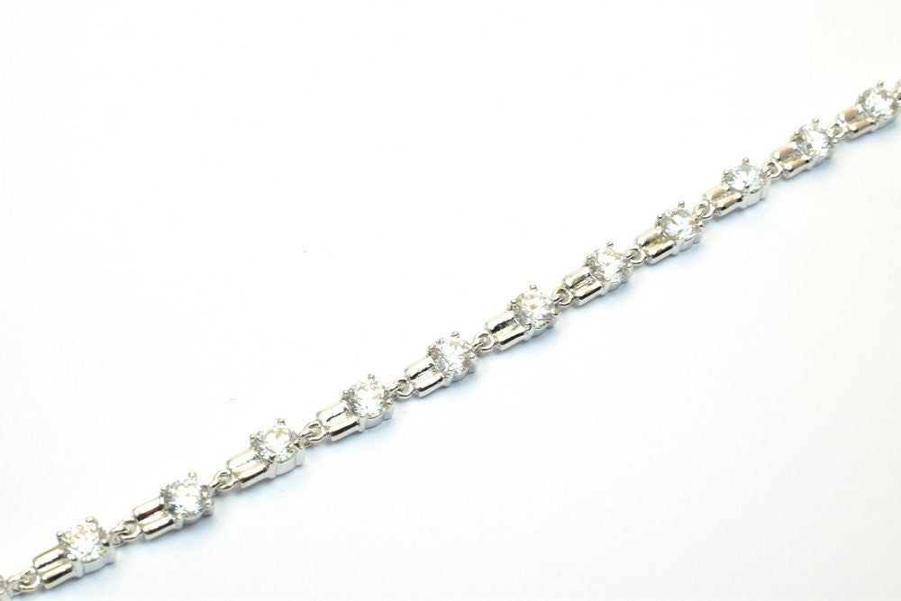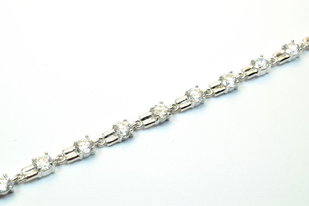 Tennis Bracelet White as Gold Filled* Rhodium Chain With Cubic Zirconia Size 6.75" Inches Bling Bling For Jewelry Making I...
